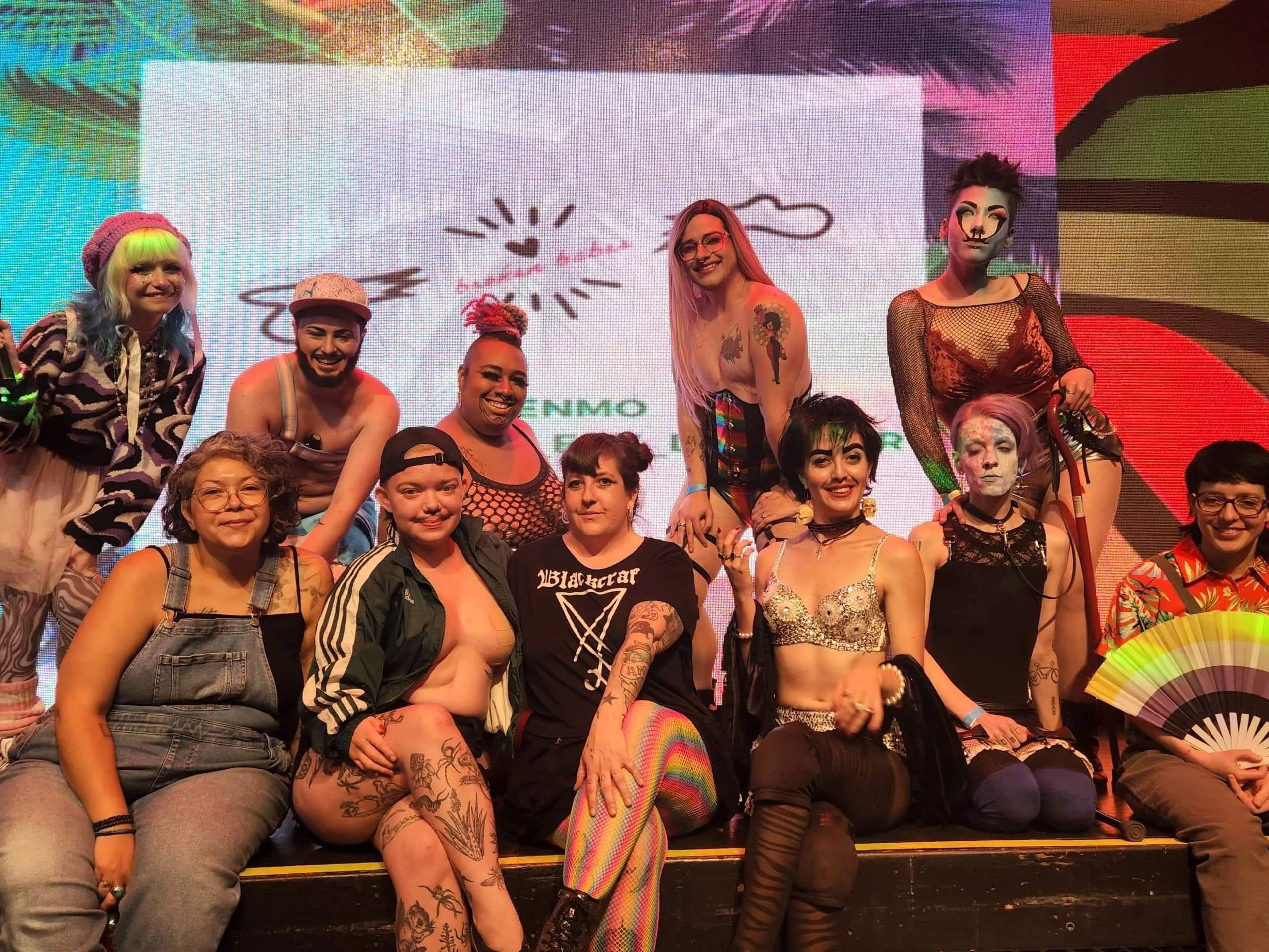 Broken Babes co-producers (bottom row, from left) Allie Soreass, Eliza Rex and Bella Brujita after a previous show.
