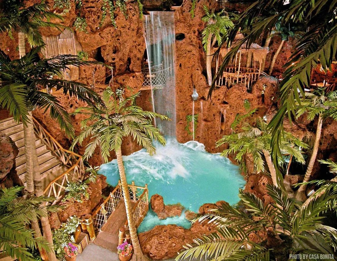 The eatertainment landmark (a historic site, thanks to a Lakewood decree and its South Park pop-culture pedigree) pumps over 26 million gallons of water through its system every year. The waterfall itself was designed to resemble the cliffs of Acapulco and are thirty feet high. Divers plunge from that height into the fourteen-foot-deep pools, to entertain and take visitors’ minds off the price tag on that terrible taco.