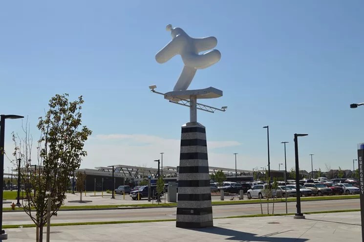 The train to DIA – the University of Colorado A Line – has had its share of troubles, including intermittent stalls and malfunctioning crossing barricades. The least troubling aspect of the RTD project has been the public-art component, with each of the stations along the route augmented by a piece of public art. The best of the batch – in fact, the best new piece of public art commissioned in metro Denver this past year – is Sean O’Meallie’s “Balloon Man Running,” at the Central Park Station at Stapleton. The Manitou Springs-based artist typically creates whimsical pieces that have a childlike sense of wonder; O’Meallie is a successful toy inventor. With “Balloon Man Running,” he tips his hat to both Casper the Friendly Ghost and to the related balloon-animal sculptures of Jeff Koons. And somehow, the piece also manages to convey the idea of hurrying to catch a train. The twelve-foot-tall piece can be seen for blocks, as it stands on a two-story-tall plinth that brings a humorous touch to a boring parking lot.