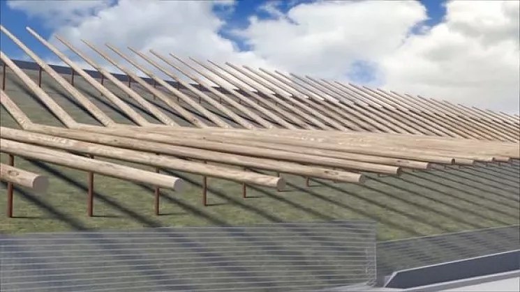 The art collection at DIA is simultaneously famous and infamous, as exemplified by the best-known piece there, Luis Jiménez’s “Mustang,” which is both. Now the airport has added one of the region’s most epic works of public art ever, Patrick Marold’s “Shadow Array,” an enormous environmental installation with a footprint the size of a building. The magnitude was necessary for the piece to even get noticed where it is, just south of the new Westin Denver International Airport and on either side of the adjacent RTD rail line flanking the station’s long platform. The RTD tracks run in a valley, and Marold’s creation lines its slopes with angled linear forms made out of joined logs from beetle-killed trees. The log elements have been arranged like a set of ribs, a pair of mirror-image radiating curves. “Shadow Array” takes advantage of its site, perfectly fitting the topography of the symmetrical slopes. The ribs create shadows when lit by the sun and via a lighting system at night, and those seemingly insubstantial reflections become as emphatic as the logs themselves. It’s smart, sensitive and gorgeous.