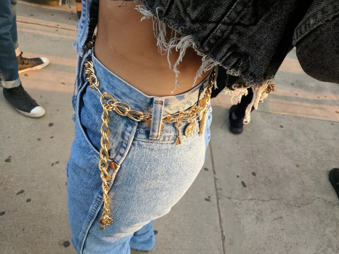 One of Destiny Acuna’s favorite accessories: a gold belt with charms.