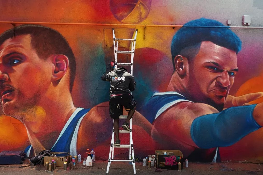 He didn’t paint it because he was paid to by the team; in fact, he wasn’t paid by anyone to paint the mural. As with his earlier Nikola Jokic mural in Five Points, Evans simply wanted to represent Denver’s pride in the Nuggets and happened to have access to the wall. (He’d previously painted George Floyd there, as well as a Denver nurse.) When the New York Times highlighted Evans and the mural, he was careful to share the spotlight with the local artistic community.