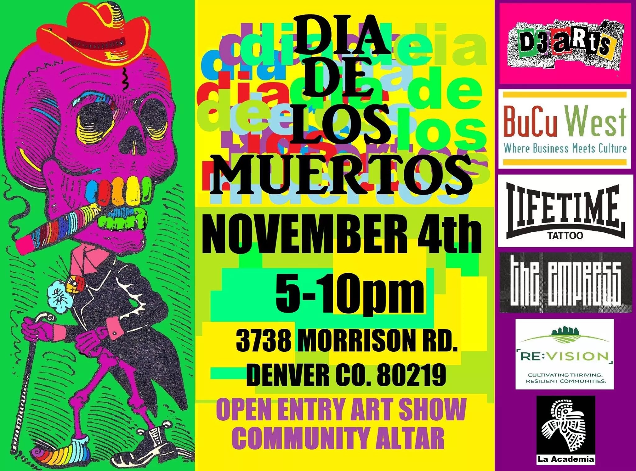 Drive the stretch of Morrison Road in Denver’s Westwood neighborhood, and you’re bound to find a Día de Los Muertos celebration. True to the traditions of the observance, for which families honor and welcome the souls of their ancestors with more joy than sorrow, Westwood’s annual Día de Los Muertos community art and altar show does it by the book, by welcoming families for an evening of Aztec dancers, face painting, Mexican hot chocolate and pan de muerto.