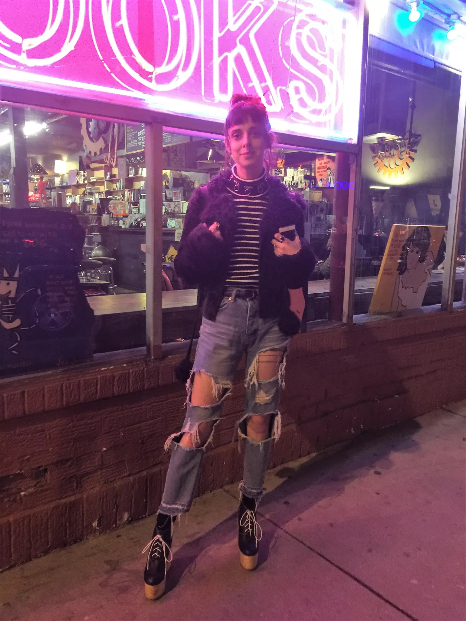 On a recent night roaming Broadway, we ran into Denver newcomer Genesis Webb, who had a style all her own. Although Webb is fresh from Seattle, “figuring things out and going with the flow right now,” she definitely has her personal style all figured out. We stopped to chat with her about her striking style, where she shops, and what inspires her aesthetic. Photo by Mauricio Rocha
