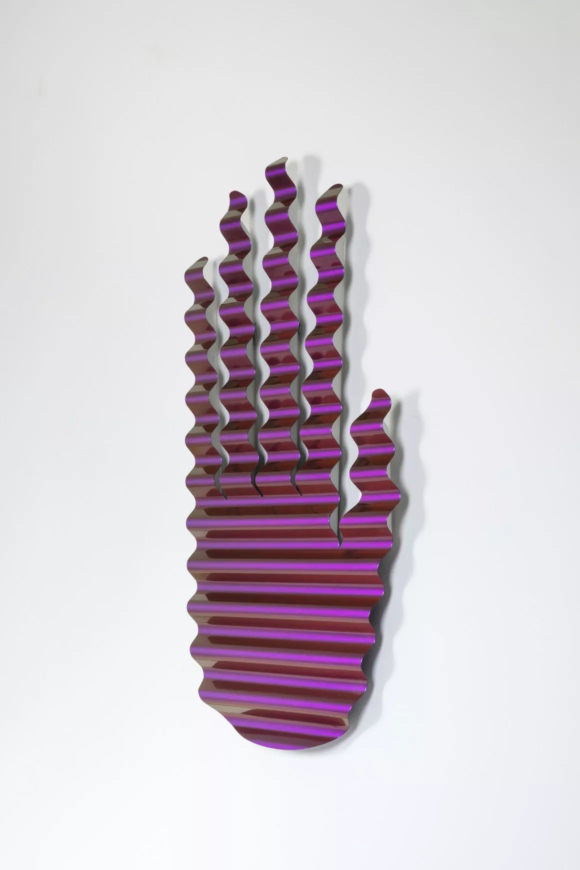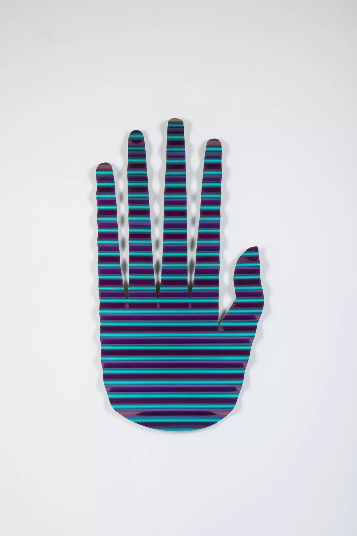 Man Is a Bubble picks up where Obergfell’s 2014 show at Gildar, Yinfinity, left off, beginning with his continued use of the iridescent, color-changing shades of Chameleon automotive paint, lending a magical sheen to his ideas. The works are visual stories about time, space, and how we travel through both, leaving clues about our existence along the way.