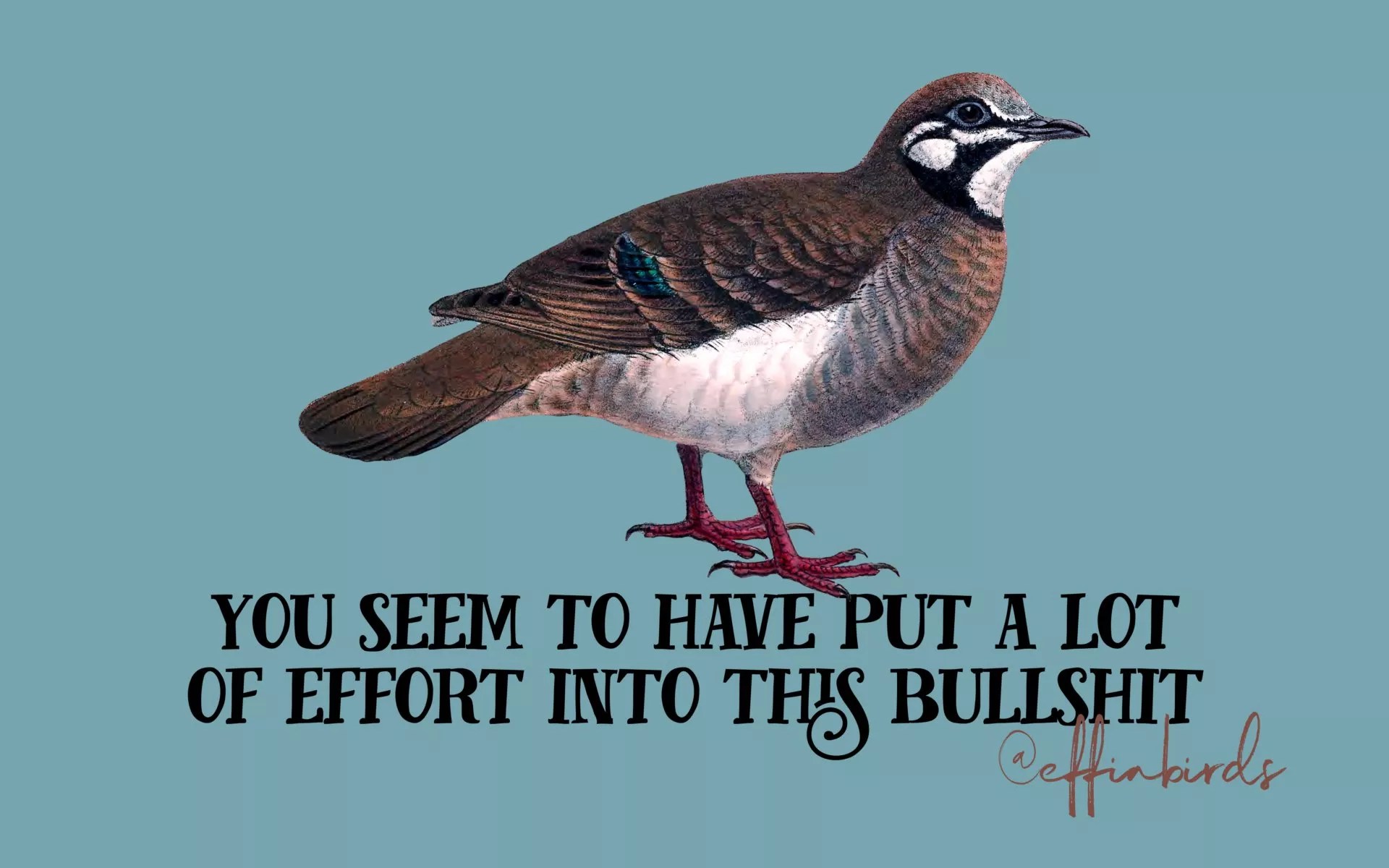 It’s the same reason that Effin’ Birds isn’t really about the effin’ birds. “I get mail from some people complaining that I’m not making enough jokes about the birds themselves,” he says. “About bird behavior. But the slice of the public that knows enough about birds for that to be funny is way too tiny. Sure, bird experts might be on the floor laughing, but you can’t survive on an audience that small.”