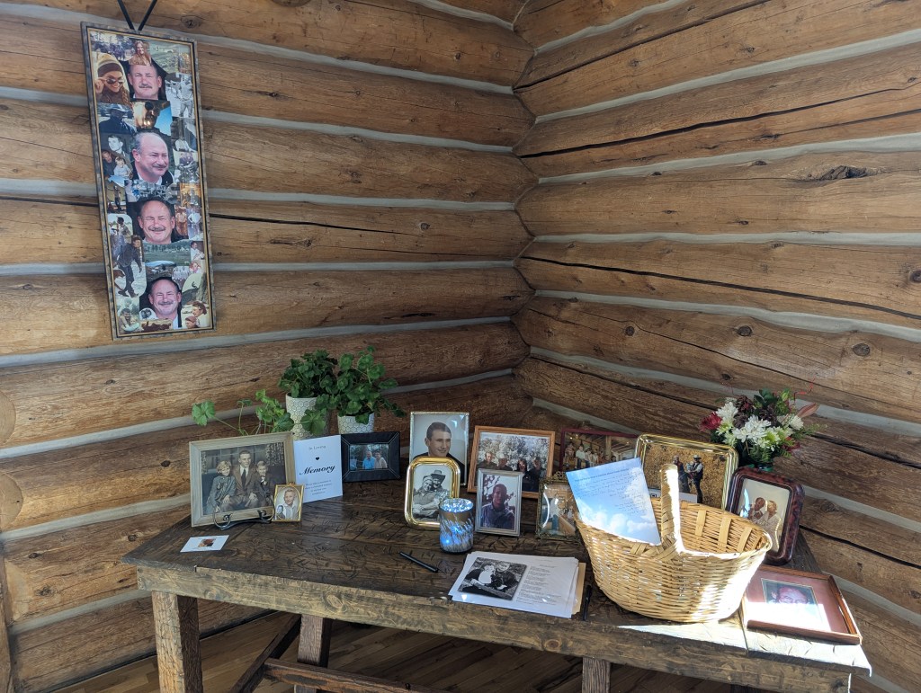 A table was set up at the gathering for people to admire photos of Hank and write stories about him for the family to read.