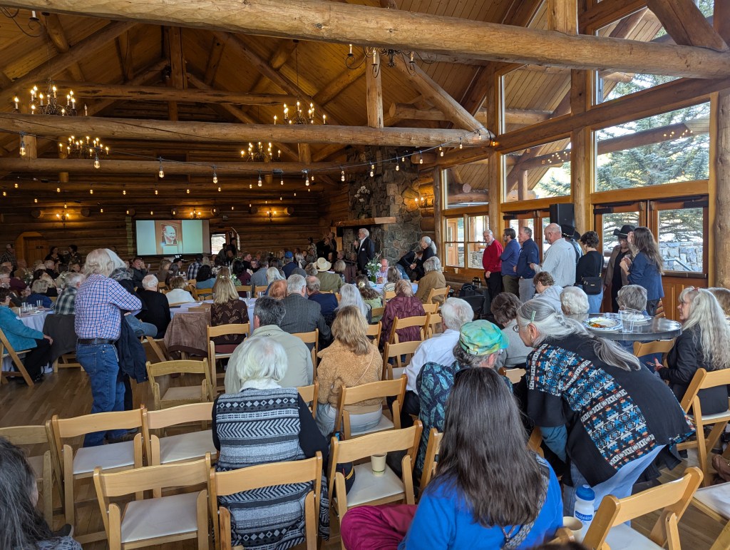 “As much as I loved Hank, I think his great legacy is bringing this community together,” Willie Matthews, another friend, said at the podium. That legacy was felt powerfully during the event, with the community he had built crying and laughing together even following his passing. When the audience was asked who got to attend any of the Alderfers’ legendary parties, dozens of hands shot up on the spot. The barn where they hosted those festivities still stands by the West Trailhead of Alderfer/3 Sisters Park.