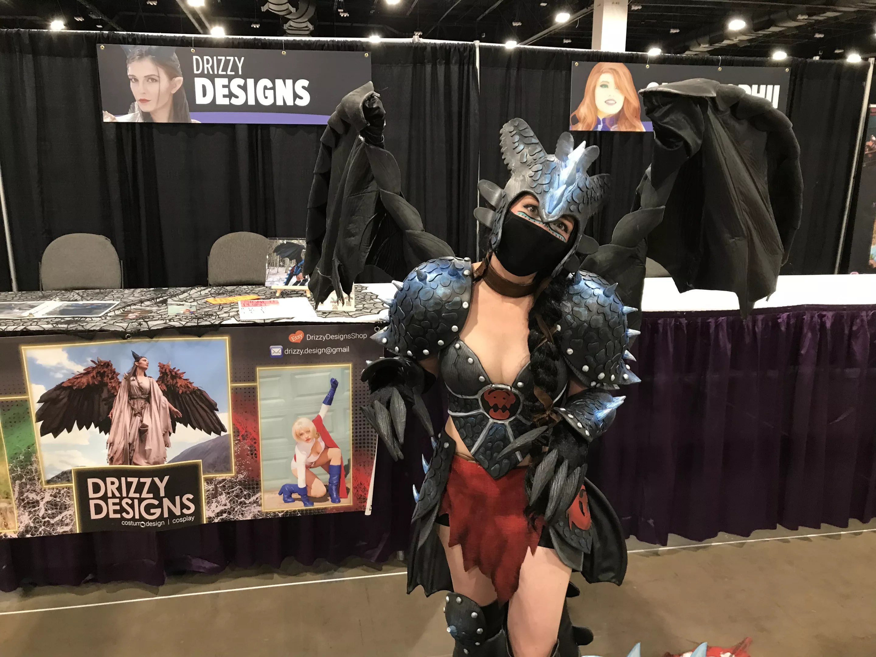 Perhaps the most notable difference this year is the addition of a new area: a long row of cosplay celebrity booths where professionals can hang out and meet fans and sign autographs. “I’m stoked about it,” said Drizzy, a pro cosplayer from Fairplay who was one of the first to take up residence in cosplay row. “I’ve got a couple of panels tomorrow, and it’s just nice to have a place where people can come find me afterwards, talk about the panels. I love to teach people how to do this stuff!”