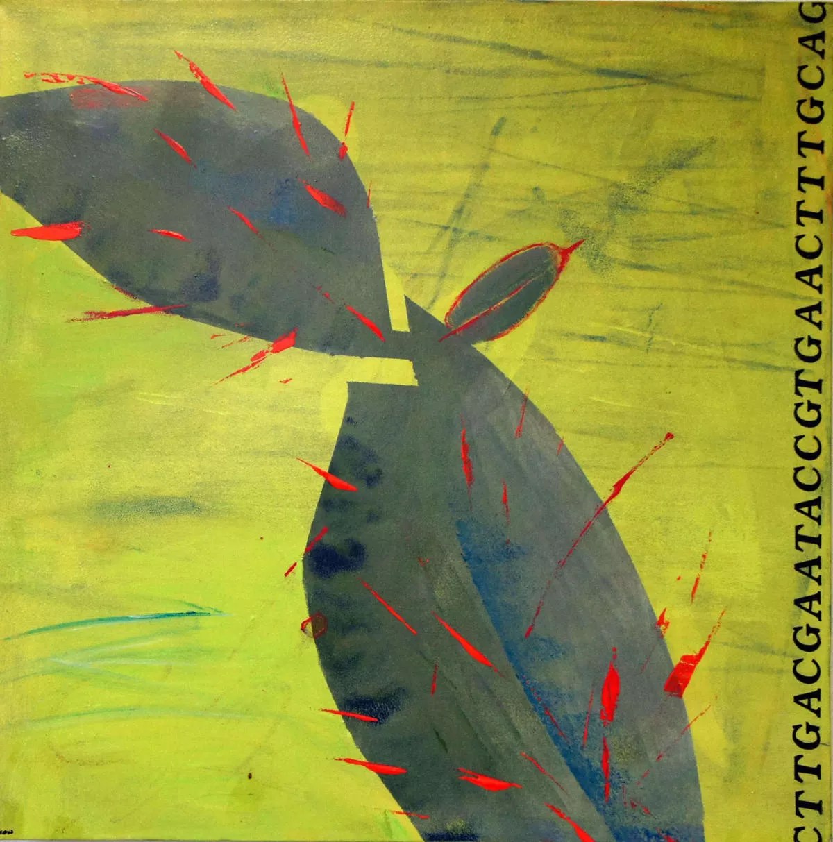 Sue Simon, “Cactus and DNA,†2023, acrylic on canvas.