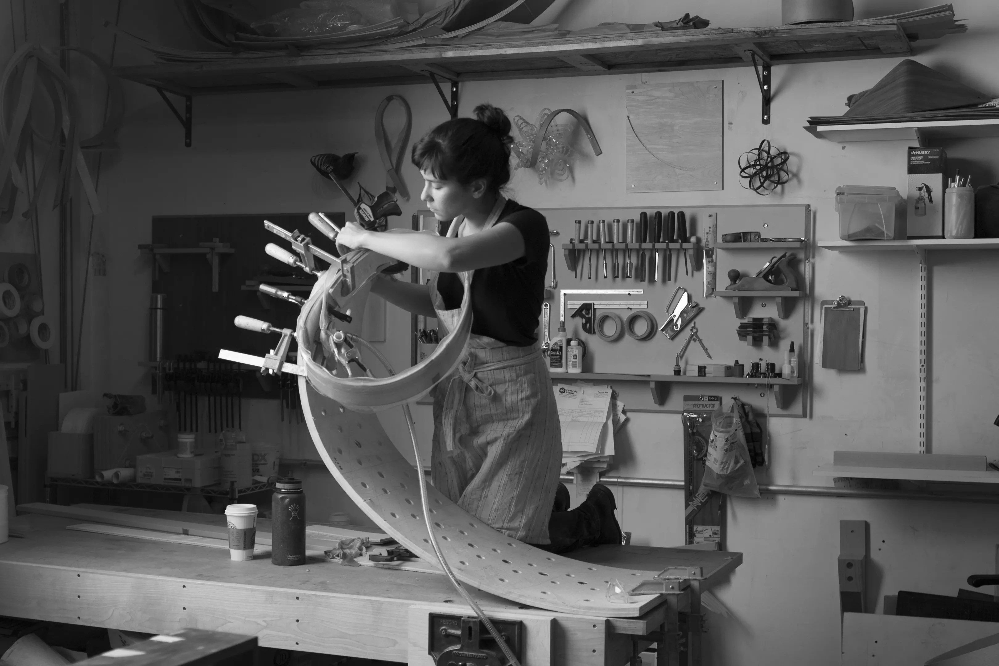 Kishimoto’s path to becoming a furniture designer was as organic as her creative process — unfolding gradually, naturally, and not without its own challenges. Growing up outside of Boston in a family of scientists, she always figured she would go to school for something more “certain.” But her creativity was undeniable from a young age and was recognized by her dad, a microbiologist with interests in photography and whittling. As a first-generation Japanese American, he embodied the John Adams quote that “I must study politics and war that my sons may have liberty to study mathematics and philosophy.”