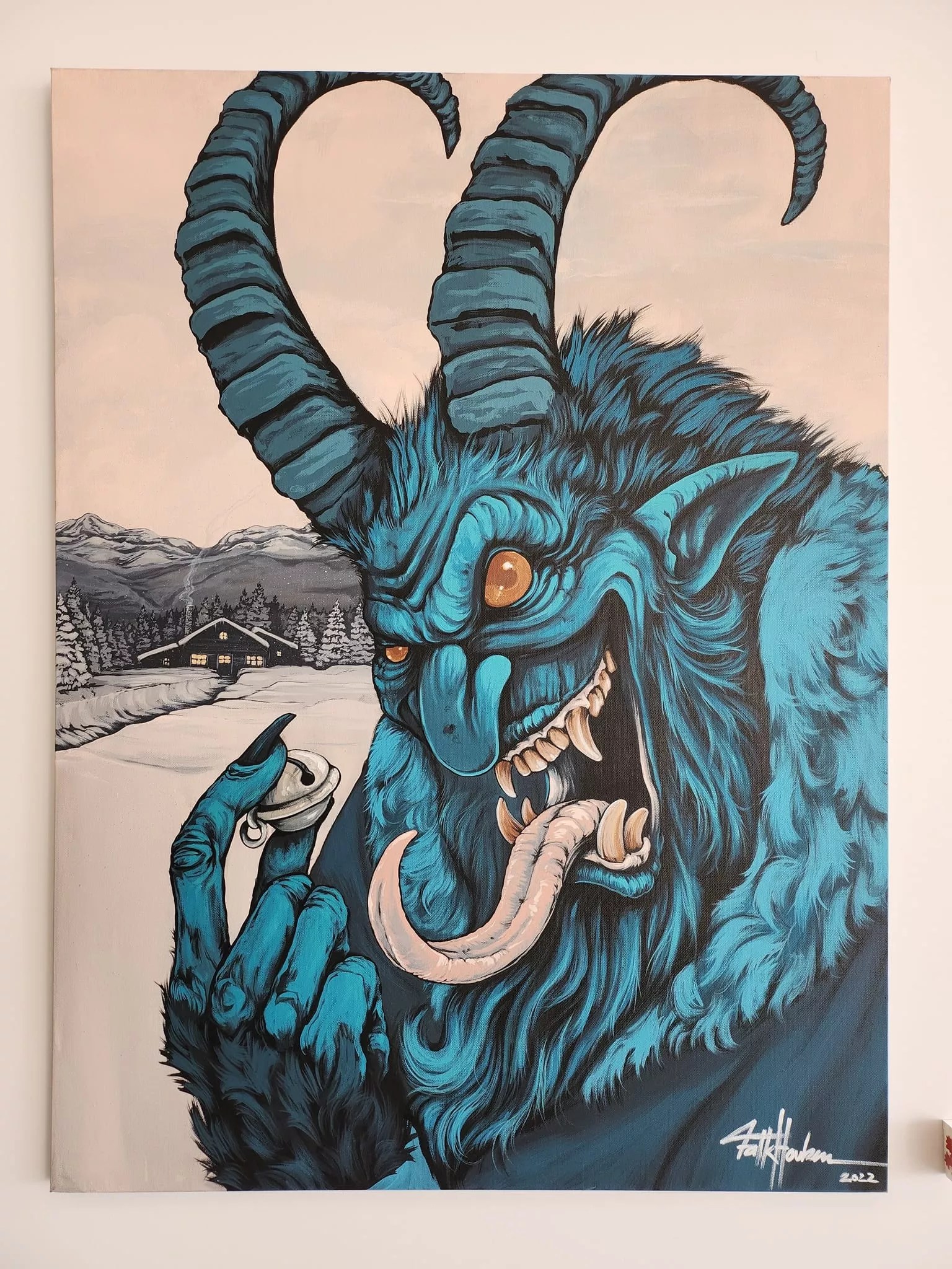 Memento Mori has fun with the dark side of Christmas by inviting artists to create work glorifying Krampus, the folkloric horned and cloven-hooved villain of central and eastern Europe who punishes misbehaving children by beating them with birch rods, while Santa rewards the good ones with candy and fruit. This is the themed exhibition’s sixth year, and it has only gained steam over that span. Another reason to be there: Special guest Lo B will be in the house impersonating Krampus himself.