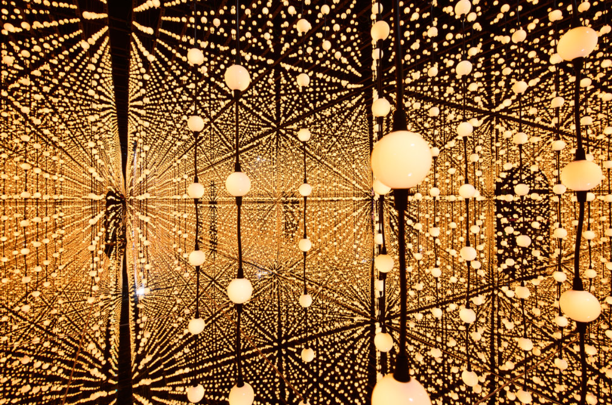 A hallway of glittering lights evokes Yayoi Kusama’s Infinity Rooms.