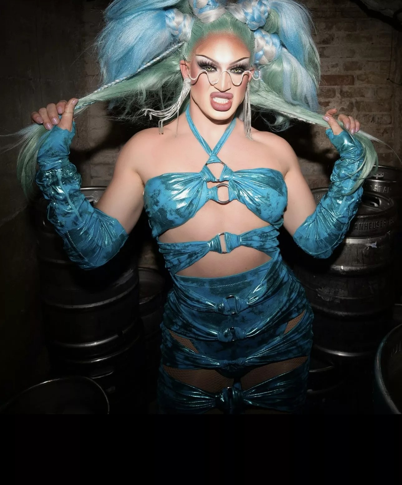 By then, though, she already had a successful summer under her bejeweled belt. L’Whor was included as a guest on Eric Andre’s tour stop here in June, then performed for the tenth time at PrideFest, which was celebrating fifty years. And all year long, she had sold-out performances and events at such venues as Meow Wolf, where she appeared consistently with members of Haus L’Whor. Yes, Jessica is (obviously) a mother: More than eleven years into her career, she now has four drag children — Sassalina BlueChilde, Talia Tucker L’Whor, Foxxy L’Whor, Krisa Gonna L’Whor — and “two on the way,” she says. “Jessica has been feeling the mama bug. I’m always on the lookout and scouting.”