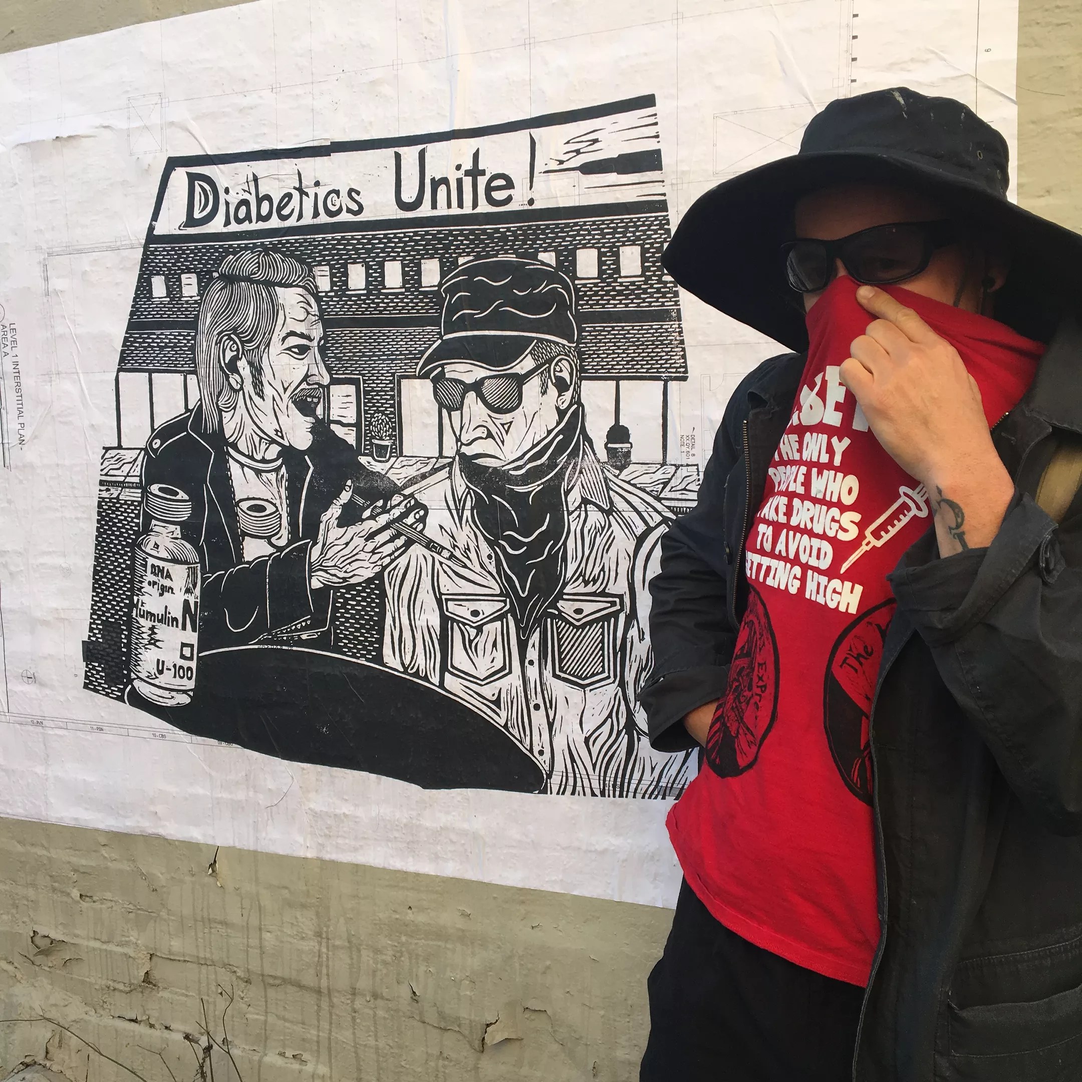 Frank Kwiatkowski defines himself through the lens of his Type 1 diabetes, a condition that rules his life, his DIY outlook and his politics. An activist for patients’ rights and other grassroots causes, Kwiatkowski prints commentary on the realities of living with diabetes as a guerrilla wheat-paster and master of the conecut print – a twist on linoleum-print making using a more streetwise carving material: the inside surface of pilfered orange traffic cones. Using this chosen medium, he carves modern images reminiscent of ’30s leftist propaganda posters, and pastes his pieces on dumpsters and city walls. Now he’s begun working in film, as well. A pedicab driver when he isn’t making and placing art, Kwiatkowski serves as a member of mayoral candidate Kalyn Heffernan’s campaign team.