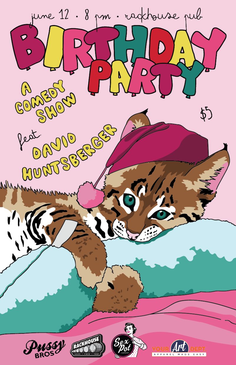 Blow out the candles, because the Pussy Bros. are back with another Birthday Party, and they’ve got a real corker planned for June. Janae Burris, Rachel Weeks and Christie Buchele are three of Denver’s most prominent comics and well worth seeing on their own, but they’ve stuffed your goodie bags with giggles this month by booking David Huntsberger to headline, thus concluding his brief run of local shows. Former co-host of the Professor Blastoff podcast and SYFY’s Reactor, Hunstberger is a brainy joke writer prone to hilarious digressions. He’s appeared on Last Comic Standing as well as Comedy Central’s Premium Blend, and he was recently a staff writer for The Benson Interruption. The theme this month is “pajama party,” so join the Bros. along with DJ Erin Stereo in your coziest or comeliest nighttime attire. While the name “Birthday Party” is usually just meant to evoke a celebratory atmosphere, this show just so happens to nearly coincide with Buchele’s own birthday, which means there’s the bonus entertainment of watching her try and keep it together. Tickets, $5, are available via Nightout.