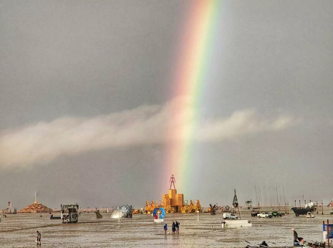 Meanwhile, the Colorado Facebook page for Burning Man, which has over 11,000 members, is full of helpful suggestions for where to get socks (wear them over shoes for better traction in the mud if you can’t find duct tape) and how to get vehicles unstuck, as well as a link of the official 2023 Wet Playa Survival Guide.