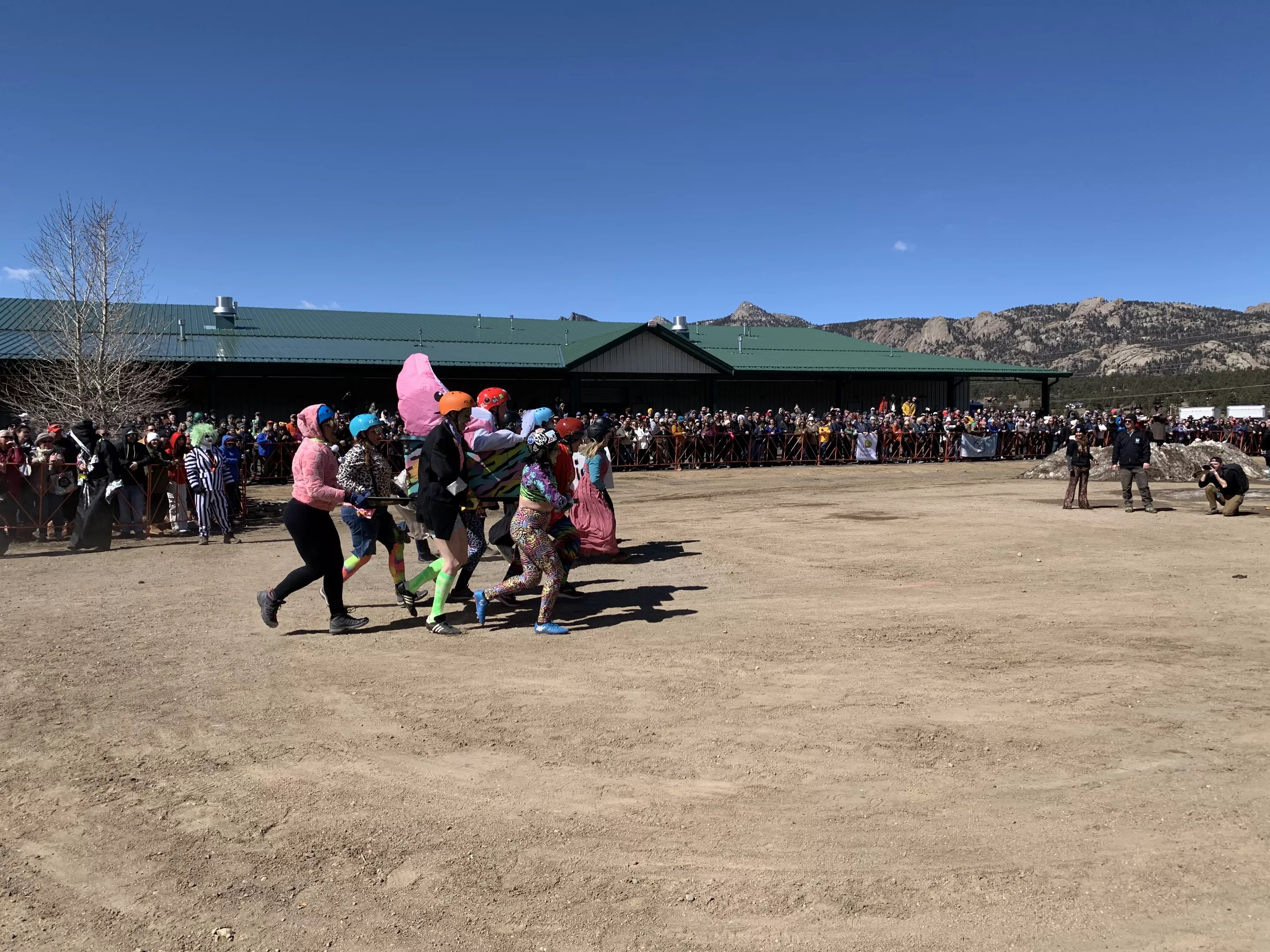 Chaotic and manic at times, the coffin races were the greatest example of how FDGD has cleaned up. “It used to be much, much more rough around the edges. A bunch of mud, snow, people hucking ice balls at you while you’re running,” said a racer from a former winning team, Feelin’ Nauti. “It was like you’re running over these slushy ice berms, and then you had to do dizzy bat…and then there were hay bales to hurdle as you were running down the course, and then a big stretch of just fucking gross mud.” Even so, he admitted he missed the grim and grit of the Nederland FDGD, and hopes Estes can bring more of that in future years.