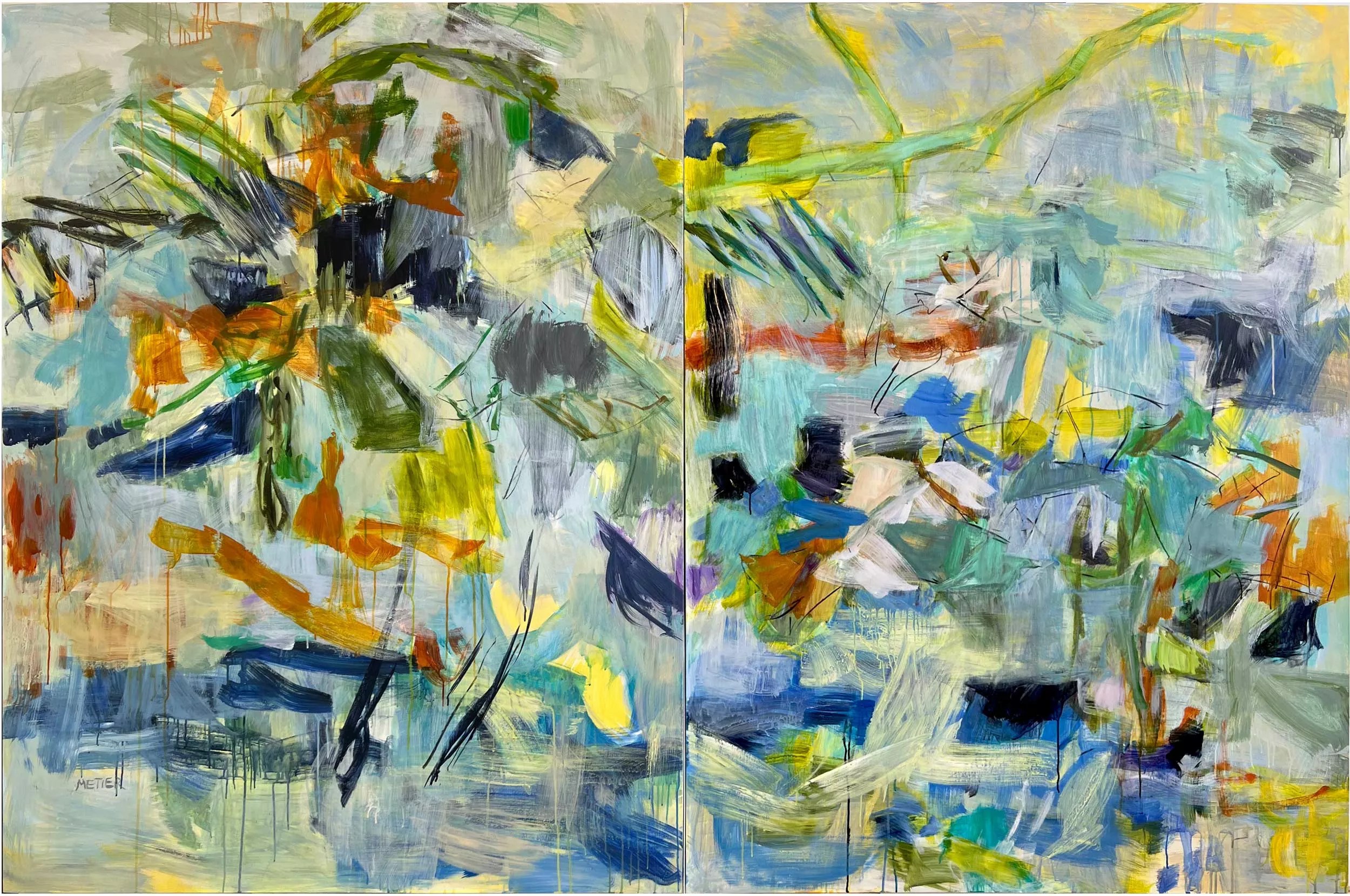 Jo Bertini, “Breath of the Last Wild River,” 2021, oil and iridescent pigments on French polyester canvas.