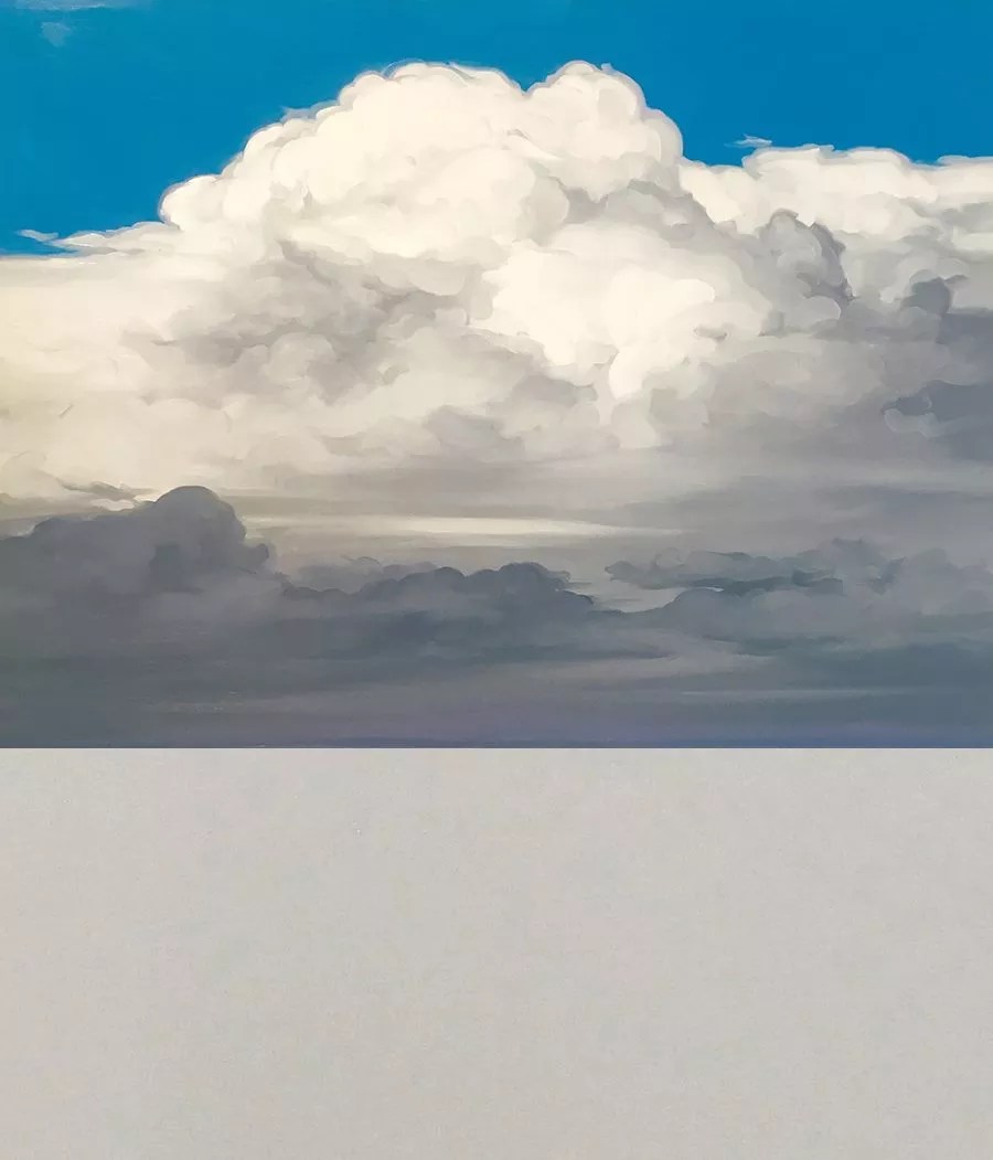 From The Earth Mai Wyn Schantz, “Cloud Stack,” oil on stainless steel. Mai Wyn Schantz