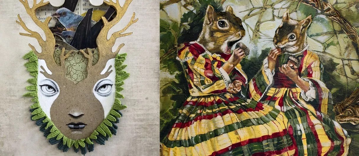 Valkarie Gallery artists Valerie Savarie and Sharon Eisley are back with their annual duo showcase focusing on Savarie’s mixed-media carved-book sculptures and Eisley’s anthropomorphic animal paintings. An annual highlight is the opening of the Cabinet of Curiosities, which will be unveiled at the reception at 6:23 p.m. We’re keeping mum on that.