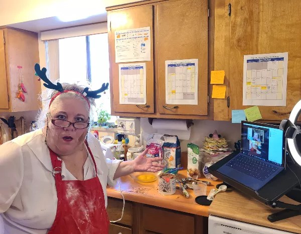I didn’t intend that, but oh, boy, is it hard to avoid pulling from real life when characters were created to be in the actors’ own homes, wearing their clothes, acting with members of their actual households. The play turned out to be quite true to life, and I definitely pulled ideas from my own family’s holiday traditions and unique infrastructure: I come from a big family full of half-siblings, second husbands and step-parents that is very into the holidays and pretty rowdy about it. Grandpa used to dress up as Santa Claus on Christmas Eve to surprise the grandkids; Grandma had decorations that we all loved; there was always a certain kind of cookie that we only made at Christmas. So this play is a little bit of a love letter to my family, and the big holiday celebrations that we can’t have this year.