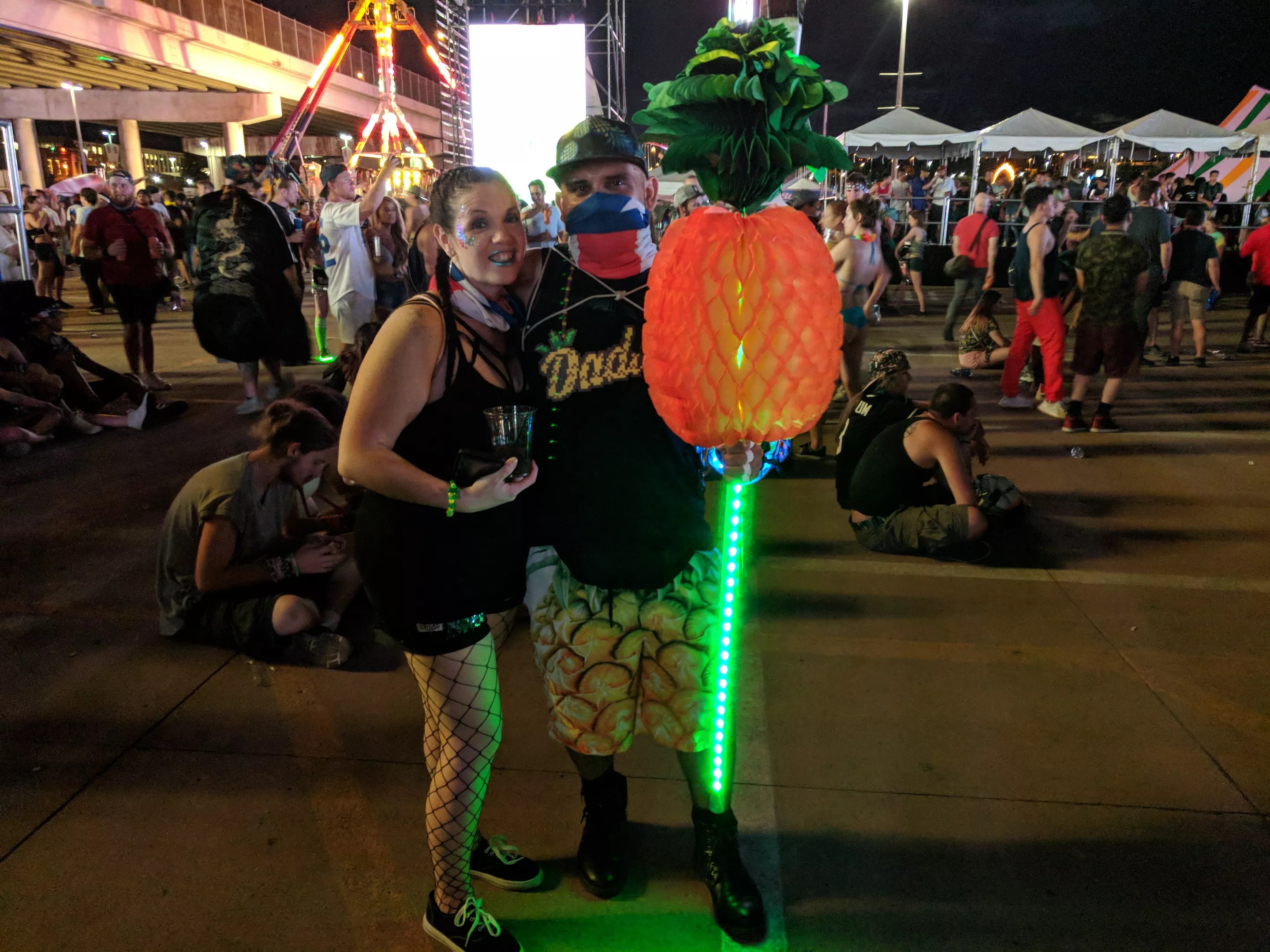 Jennifer Stallcup: His inspiration for his outfit and fashion for the festival was pineapples and Borgore. Pineapples are a symbol of hospitality, and that’s what we do in Texas.