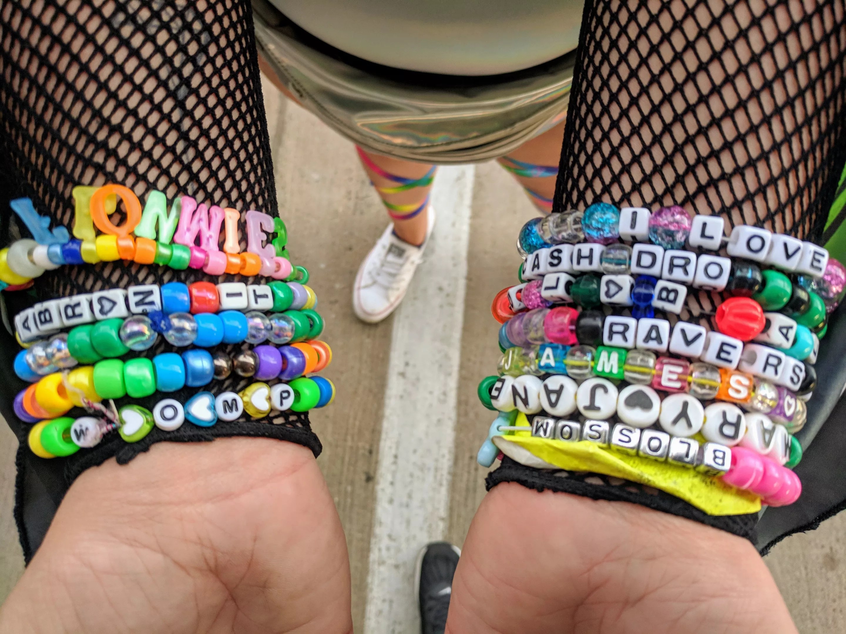 Howery completed her look with a bunch of candy bracelets, the go-to accessory for any true raver. Jennifer Stallcup and Mauricio Rocha
