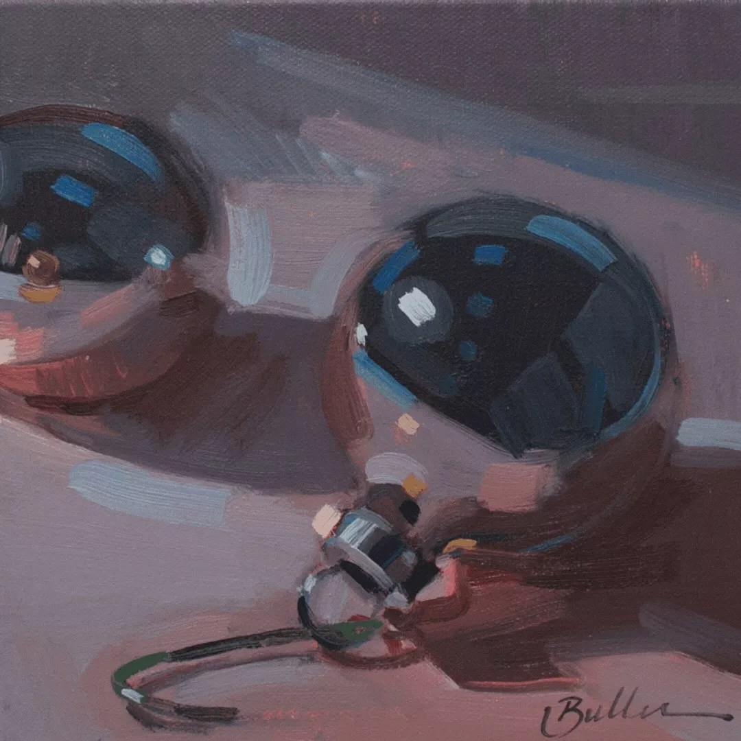 A still life of Christmas ornaments by Samantha Buller.