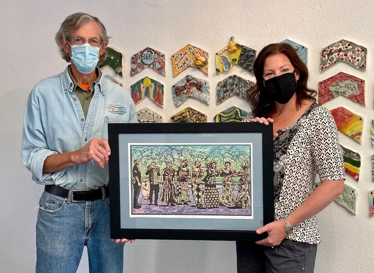 Thirtieth Annual Holiday Miniatures Show DAVA resident artist Michael Keyes shows off his woodcut print inspired by the Congolese Gloria Choir performance held at DAVA last summer. Courtesy of DAVA