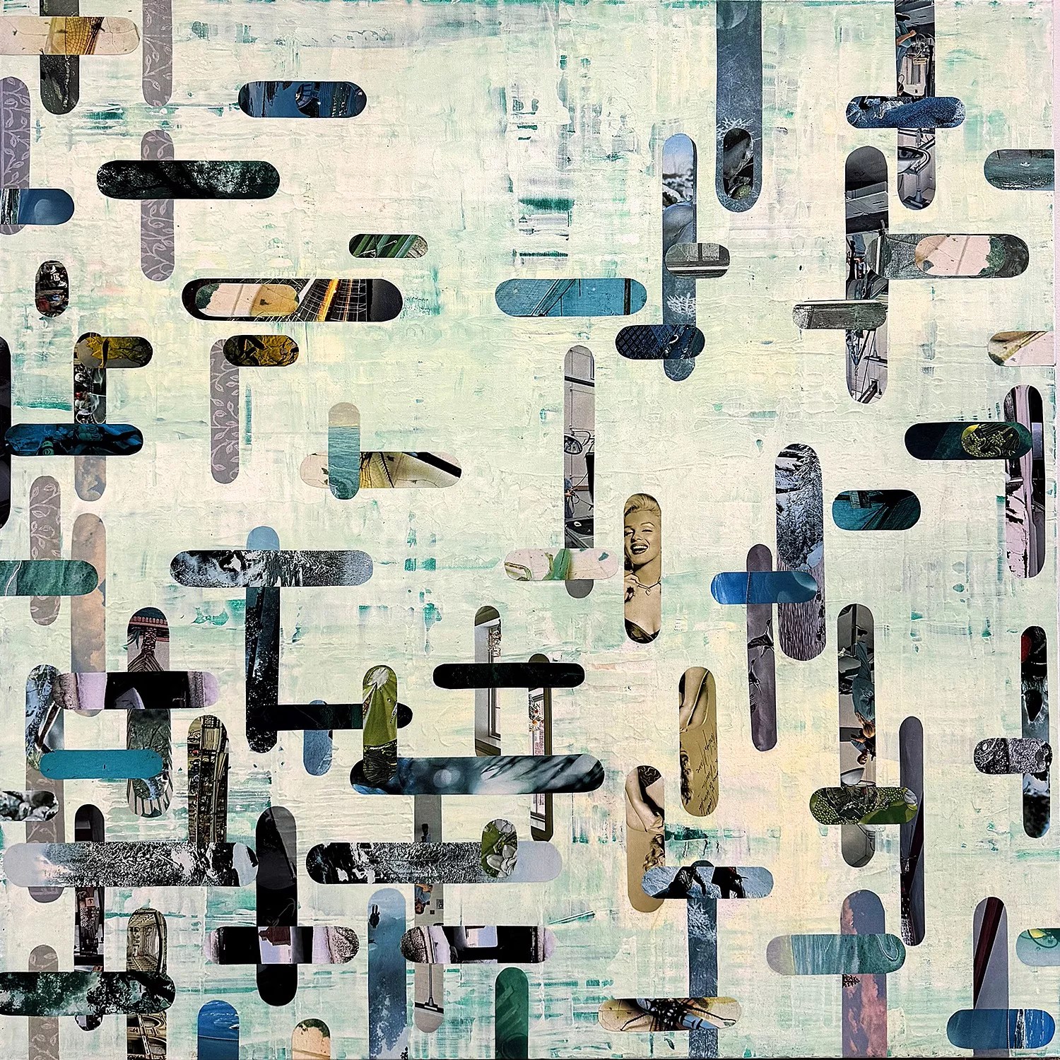 Doug Haeussner, “Subconscious Soul,” multimedia collage, National Geographic Magazine cutouts and acrylic on canvas.