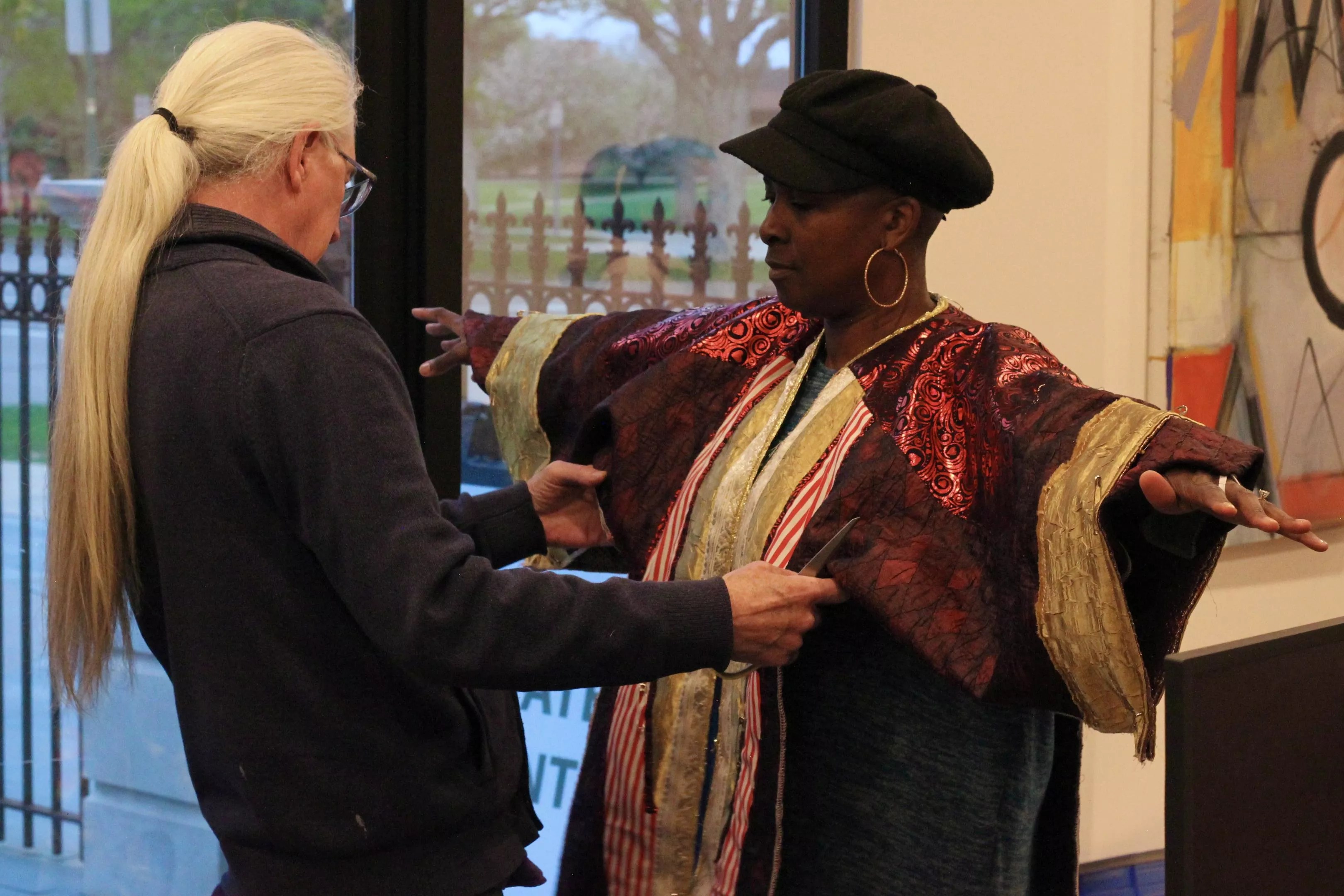 Lonnie Hanzon in a fitting with actor Betty Hart.