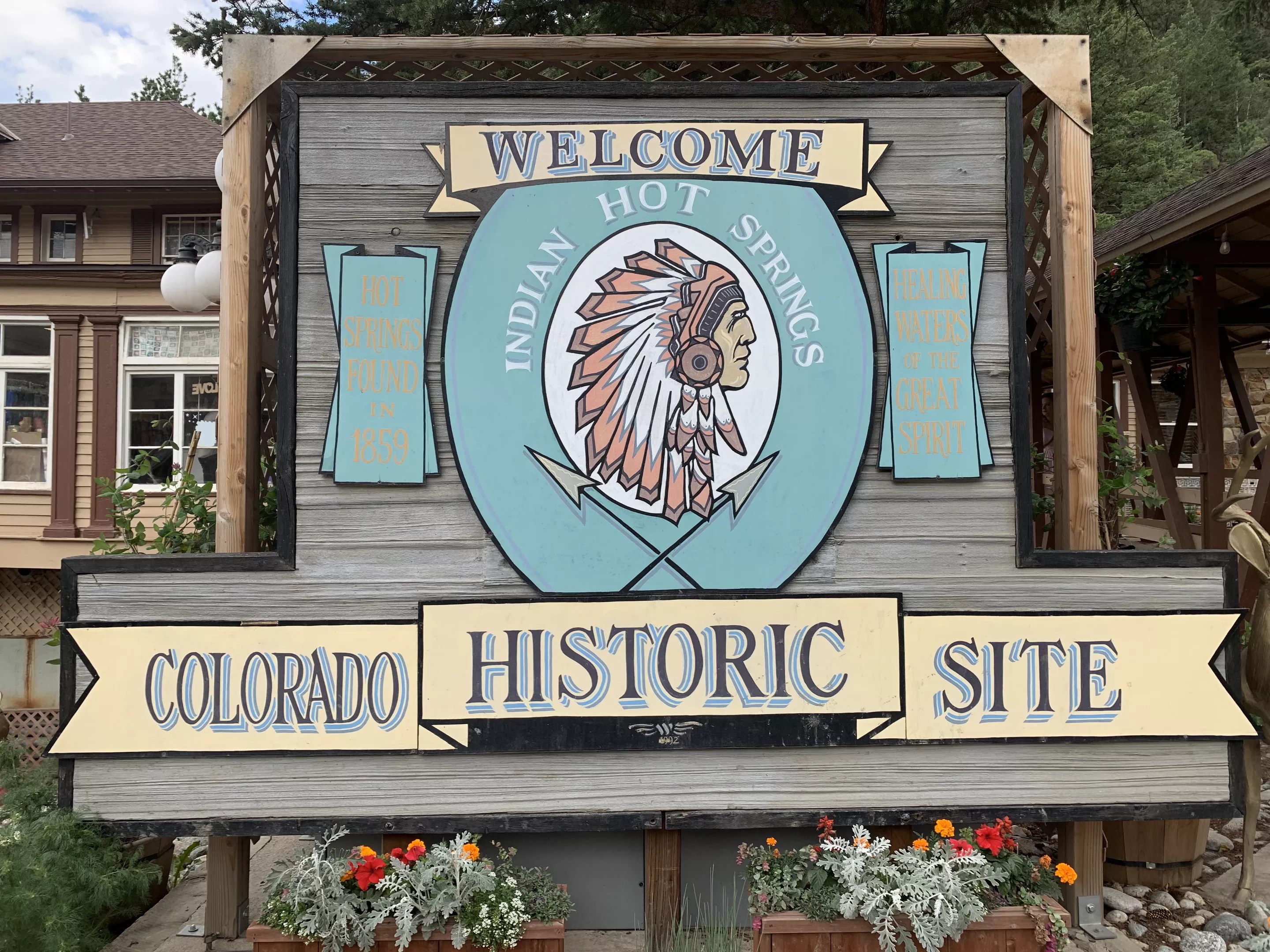 After finding the first placer gold in the Rocky Mountains near what is now Chicago Creek in 1859, George A. Jackson wrote about his find and a nearby hot spring, creating the first written record of the place. In 1863, E.M. Cummings invested in claims that disappointed miners had left behind after only striking hot water. Cummings built a wooden structure by the spring and charged for what he called “public health baths.” In 1866, the property was sold to Harrison Montague, who replaced the wooden structure with a stone bathhouse; he also built the gazebo that still stands in the swimming area. In 1869, he built what remains the center section of Indian Hot Springs, calling it the “Saratoga of the Rocky Mountains.”