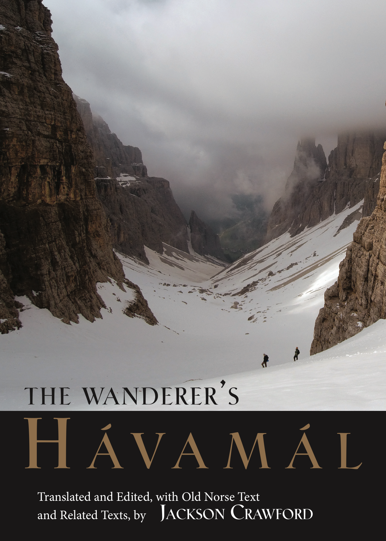 I first encountered Hávamál in small extracts that I read in Edith Hamilton’s Mythology when I was eleven or twelve. I was struck by how much the practical wisdom and cynical tone reminded me of the vague “Code of the West” and the advice I received from my grandfather. I thought of it as something of a codification or confirmation of the philosophy I learned at his knee. Later, after I had begun studying Old Norse late in high school, it was the first thing I wanted to read in that language, and I began to memorize it in the original. After I began teaching Norse mythology, I realized that no available English translation used English that was approachable enough for modern-day readers to appreciate its real sense of humor and its universally applicable wisdom. So I began translating it myself, and the earliest published version of that translation appeared in my translation of the whole Poetic Edda, The Poetic Edda: Stories of the Norse Gods and Heroes. I’ve continued to tweak and perfect that translation since, and now I’m excited in The Wanderer’s Hávamál to have the chance to show you my translation side by side with the original Old Norse, along with a commentary that often explains the more difficult translation decisions I’ve had to make.