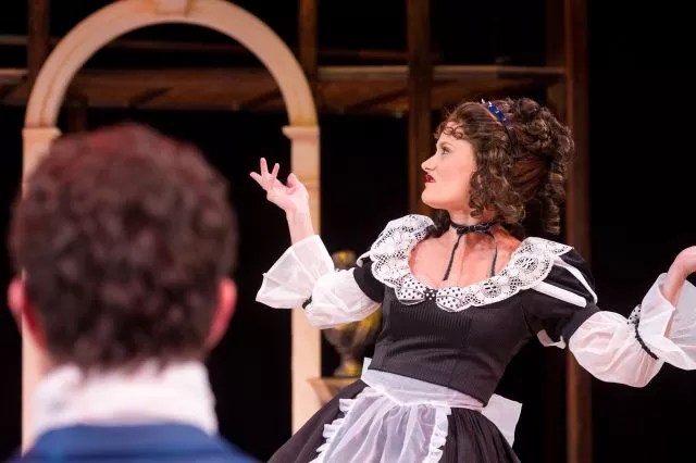 Austgen as Dorine in Tartuffe, at the Arvada Center Black Box Theater.
