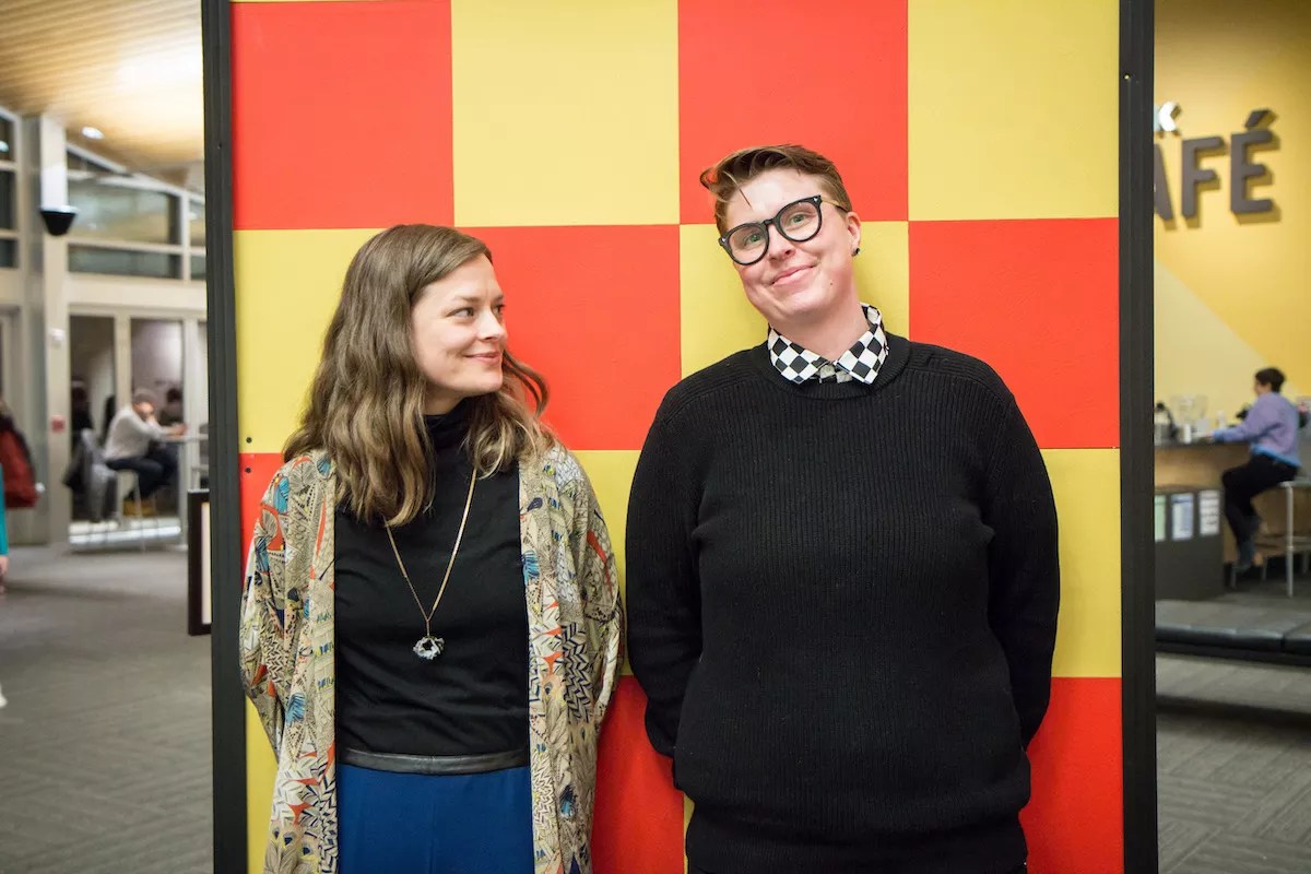 Parker with Kenzie Sitterud at the opening reception for Touch, now on view at the Dairy Arts Center.