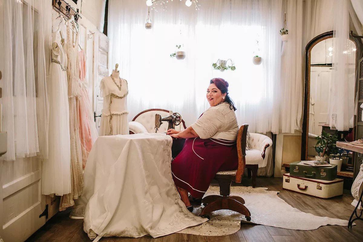 When a bride-to-be came to her with a gown from 1909, McClellan restored the dress by creating a new interior to hold the fabric together — and found the bride shoes to match. When another bride came in with unused 1950s fabric that her grandmother had stored away, McClellan turned that into a wedding dress, too. Dresses that have been torn, discolored or stained all have their place on the designer’s long list of accomplishments. Even in cases in which an entire dress isn’t salvageable, McClellan finds a way to rework threads and buttons to keep the dress’s legacy alive.