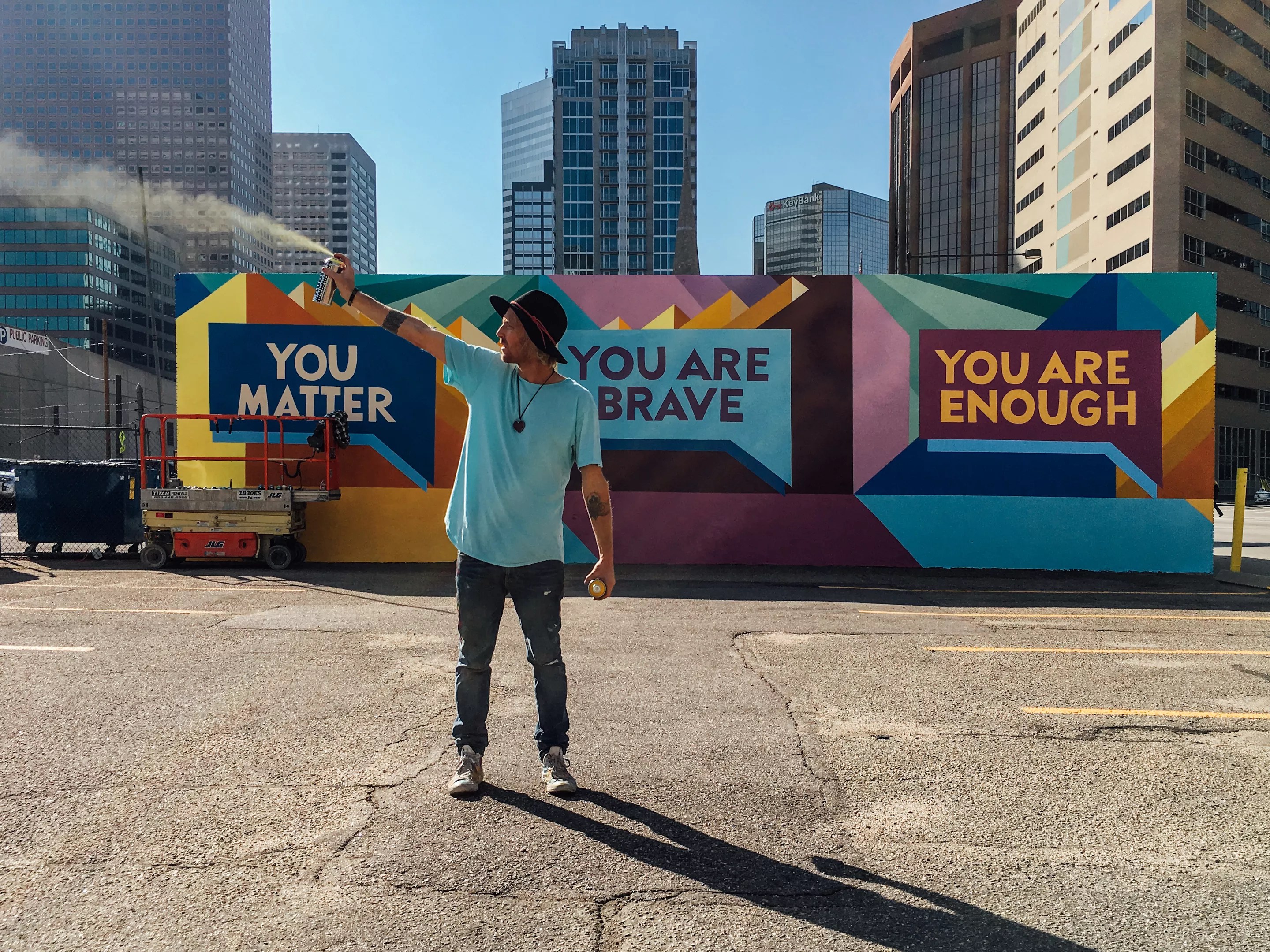 Driving south on Broadway downtown, you might get an unexpected confidence boost when you see a mural that reads, “You matter. You are brave. You are enough.”