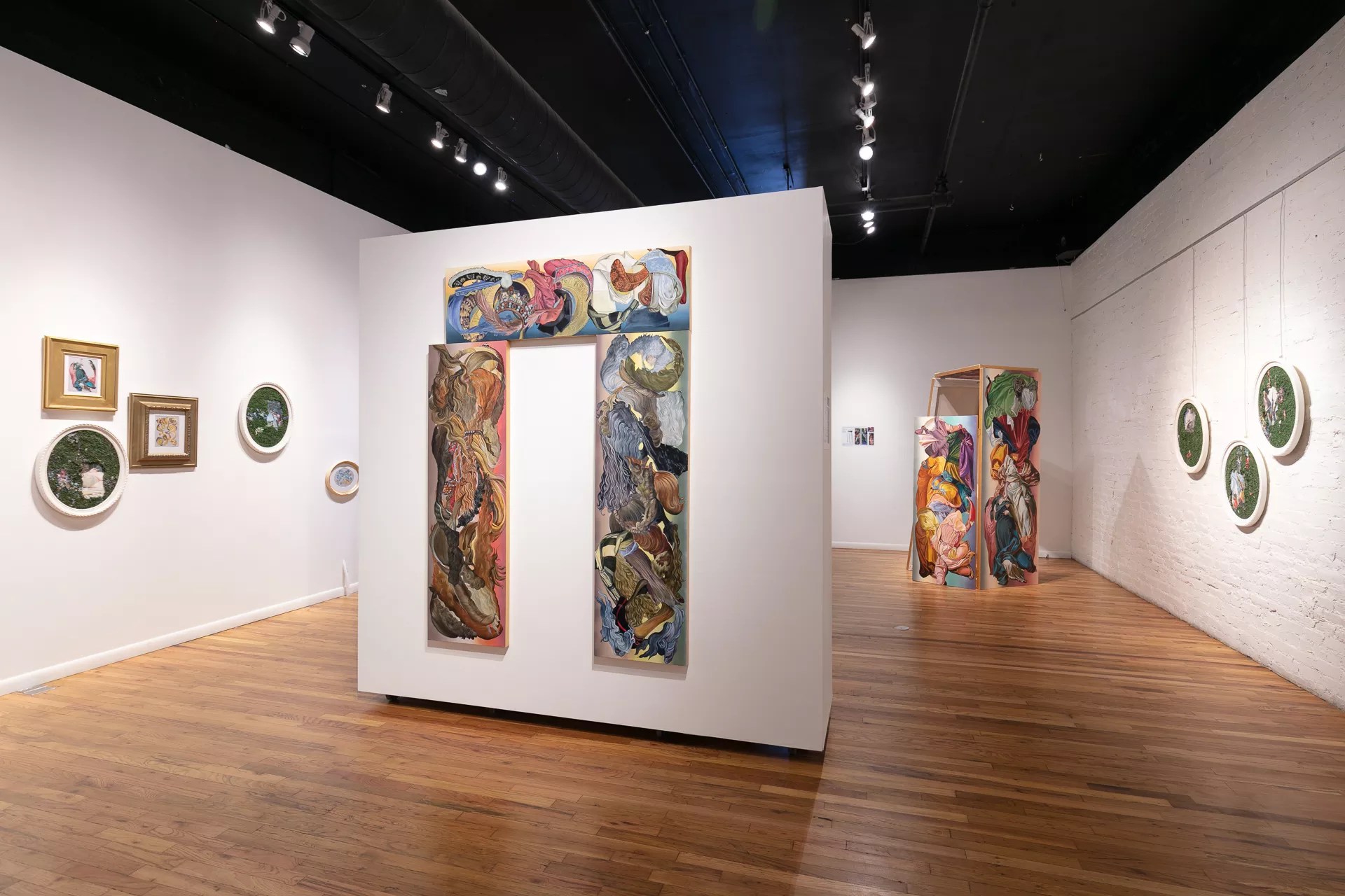 In a funny coincidence, across town Kaitlyn Tucek is using representational imagery to likewise question the canon of Western art history. In Overlook, a solo at Leon Gallery, Tucek takes on the white-male domination of the discipline…which, if you think about it, is also what Furness is doing.
