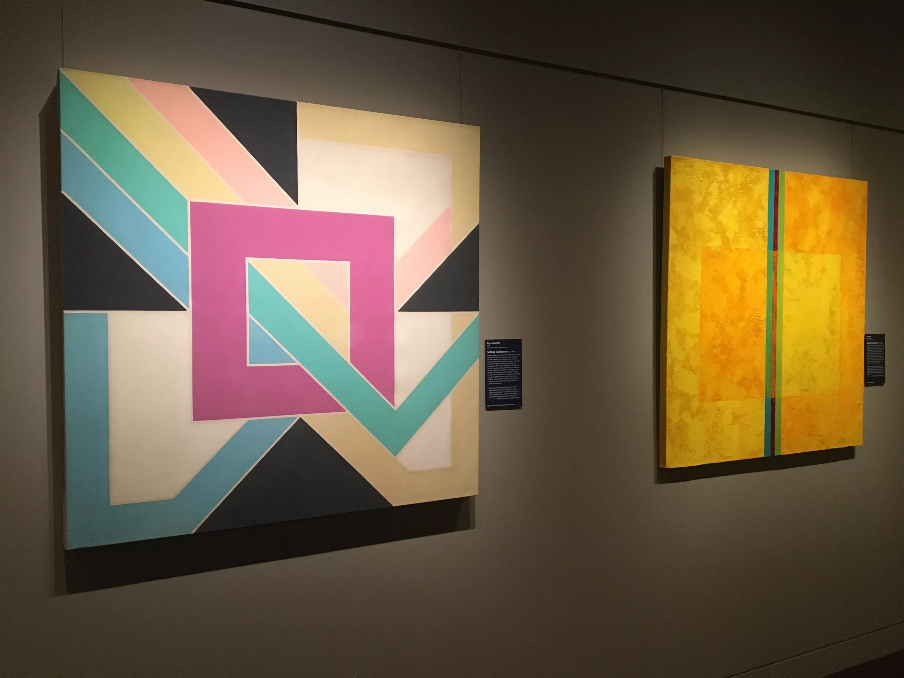 Sidney Guberman’s “Reyes Point III” (left) and “Untitled,” by Robert Strohmeier, in New Year/New View at the Kirkland Museum of Fine & Decorative Art.