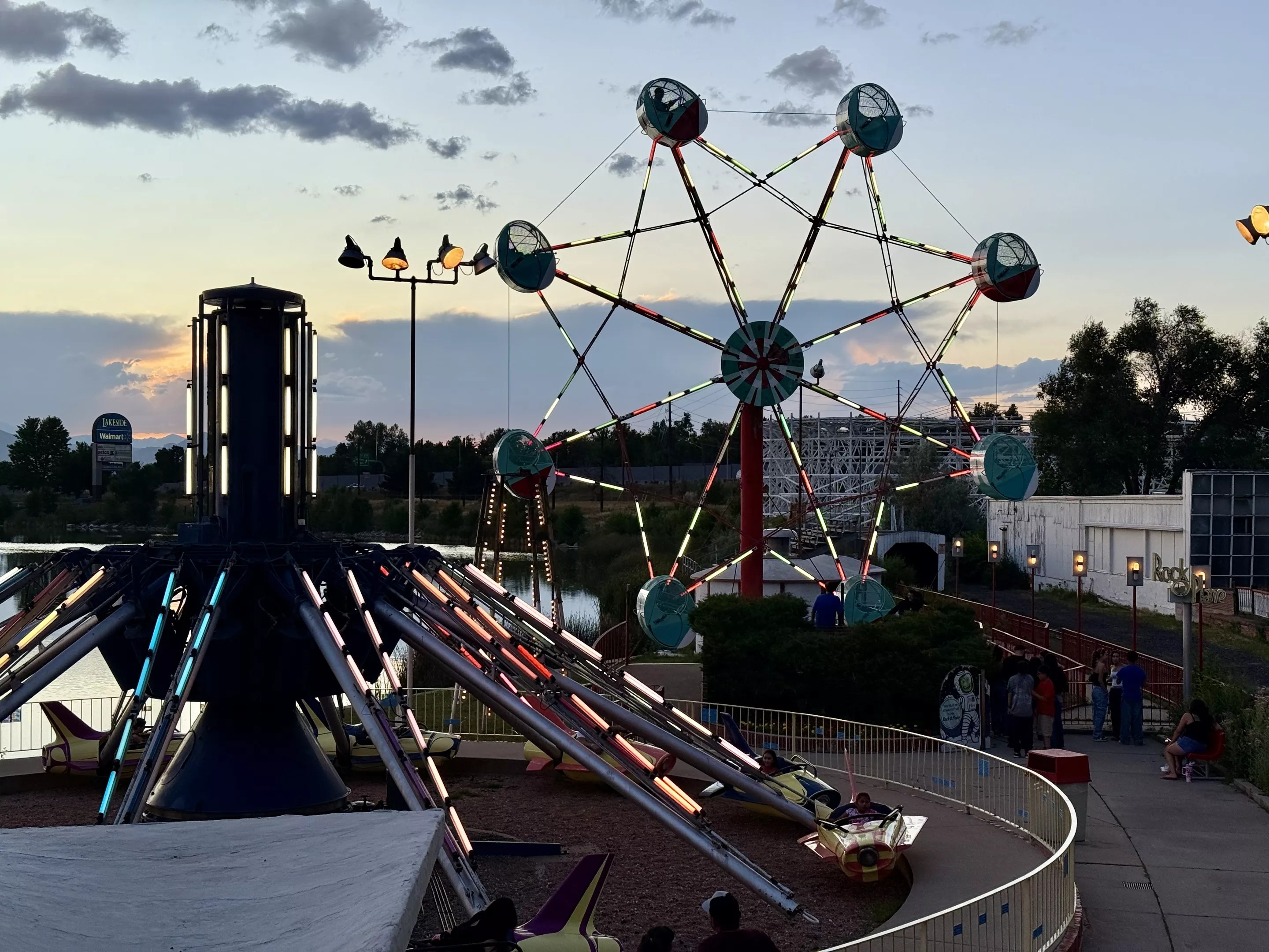 Lakeside might look like a relic if you’re driving by on Sheridan Boulevard or Interstate 70 – its golden, red-domed Tower of Jewels is chipped and peeling – but inside the park, particularly at sunset, the place is thick with families and thrill-seekers giggling and cycling through rides.