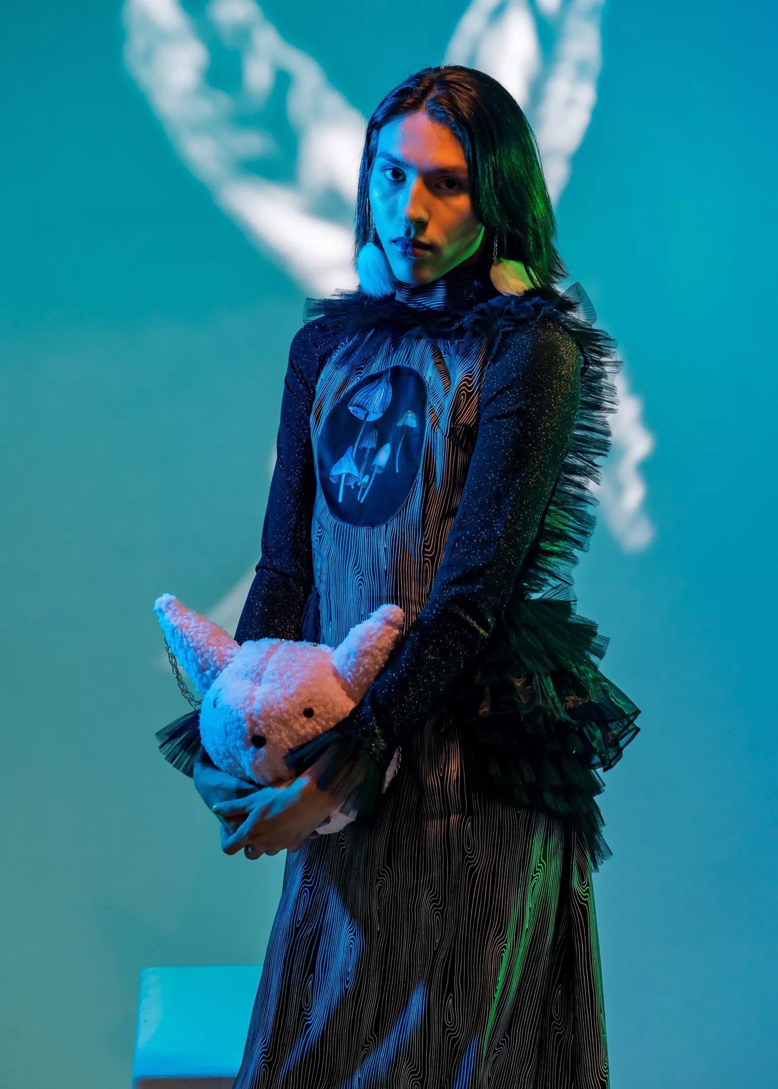 Van Der Lingen is inspired by artists who have a bold style, such as Yayoi Kusama, Hayao Miyazaki and Minju Kim. It’s easy to see the connection in her work, which showcases designs with drape, ruffle and volume accented with sparkles, tassels and layers of texture.
