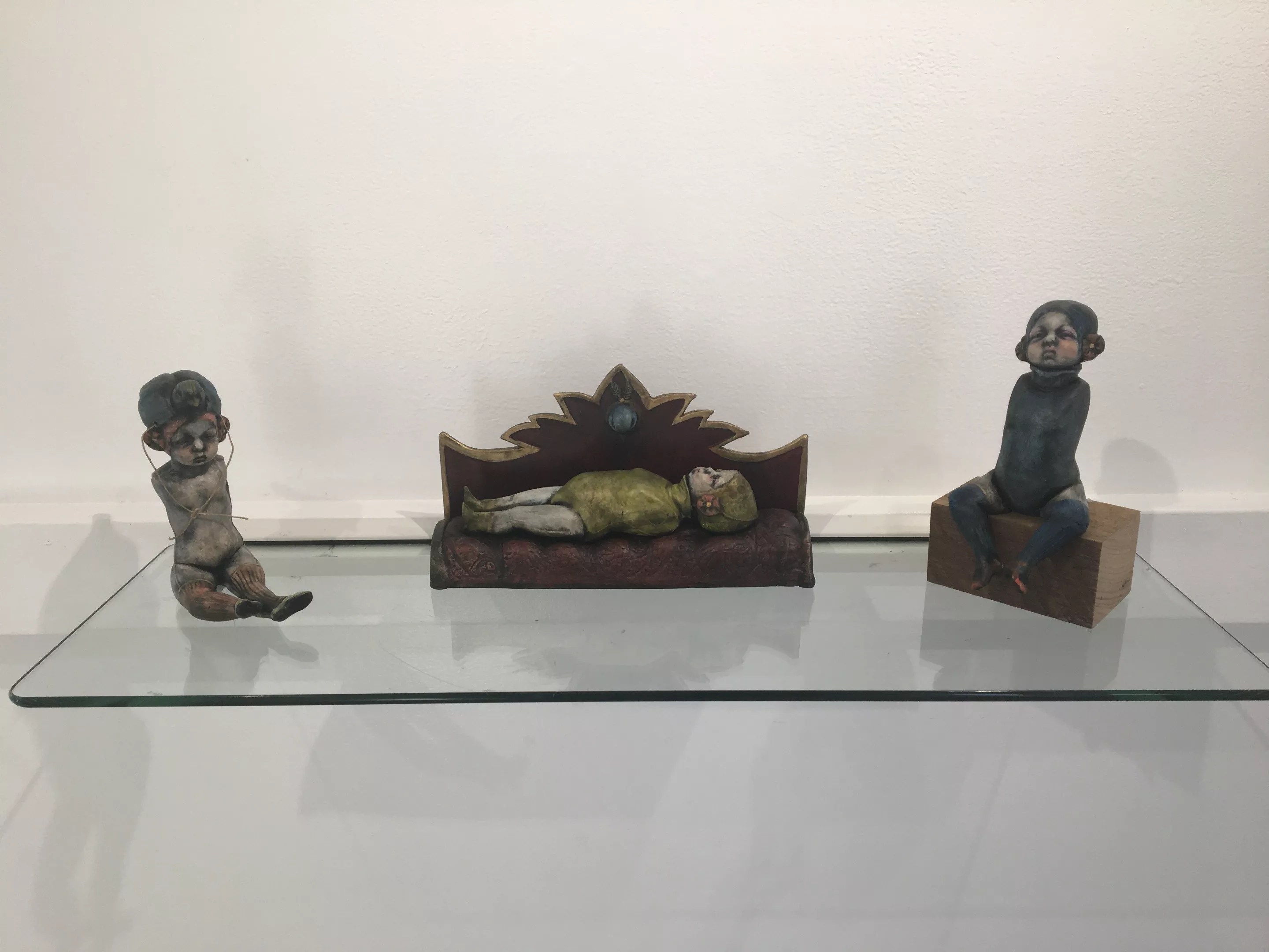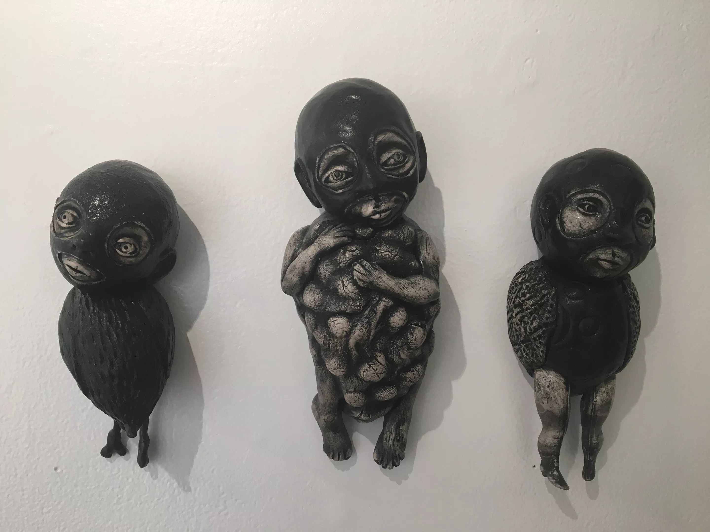 Goth-style baby doll wall sculptures in Touched/Marie EvB Gibbons.