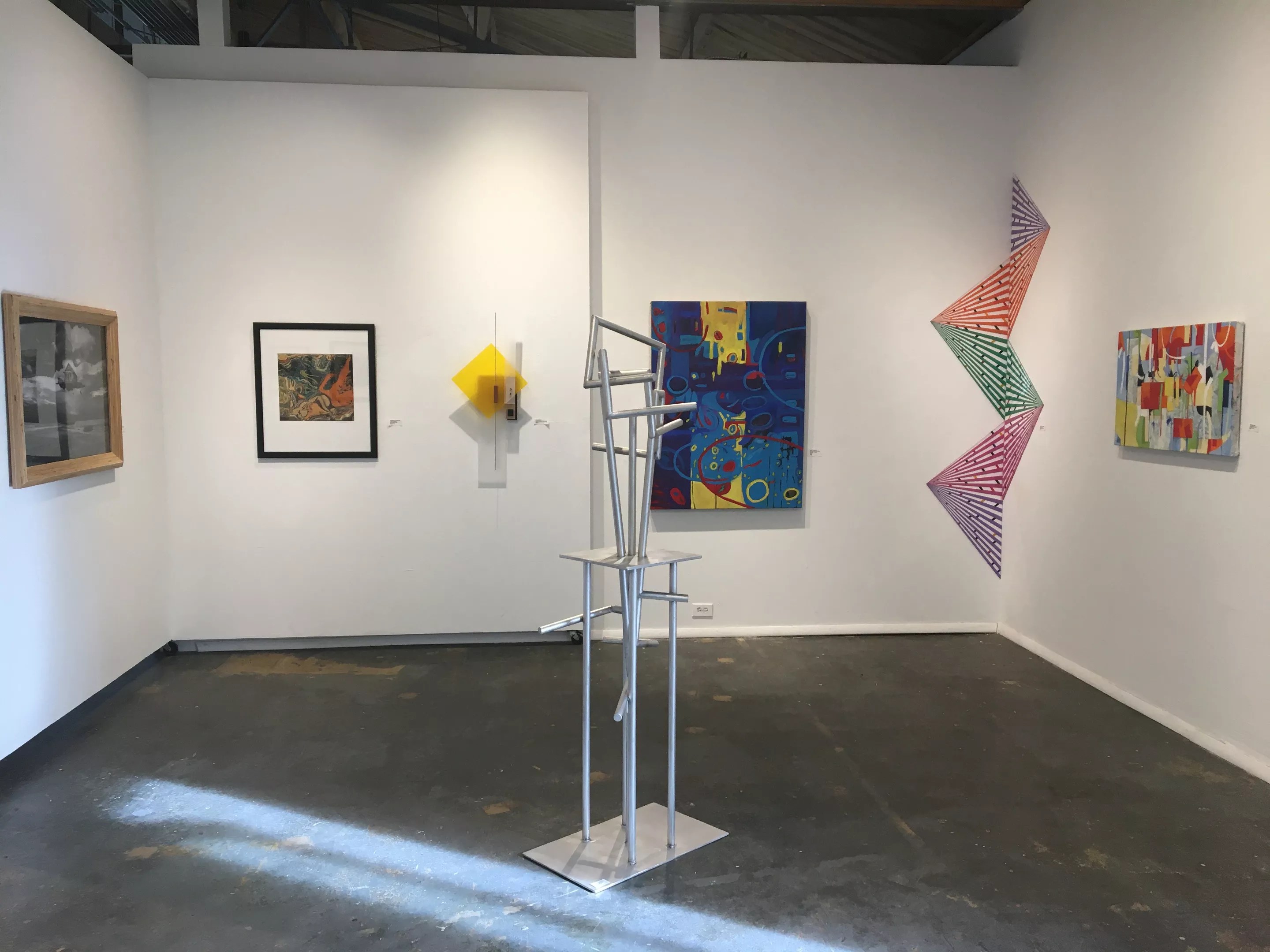 Adjacent to Spark is one of the city’s newest co-ops, D’art Gallery, which occupies Core’s former home. D’art was founded last year by artist Kat Payge, who also bought the building that houses the galleries. As often happens when a co-op first comes together, D’art has had some growing pains, with founding members leaving and new ones coming in, which is why it makes sense to host a member show, Many Voices, One Message, just a few months after the last one.