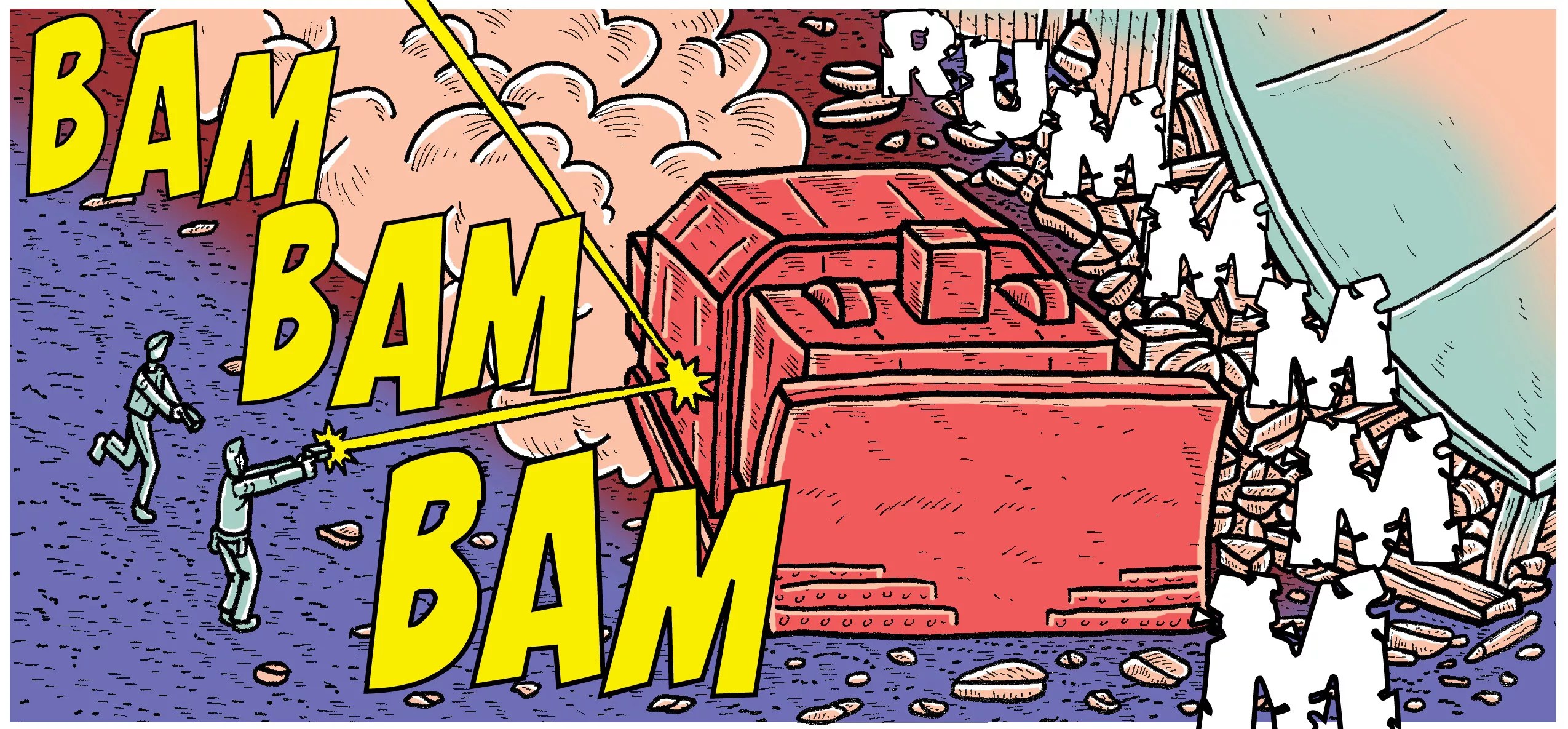 The project, Dozer Manifesto, has been a web comic since 2019, focusing on the 2004 homegrown terrorist-like attack on Granby for which local welder Marv Heemeyer had built — and used, to terrifying and destructive effect — a homemade tank. Heemeyer drove it into buildings occupied by those that he thought had wronged him over the years: a concrete plant, the offices of Mountain Parks Electric, the town hall, Liberty Savings Bank, the Sky-Hi News headquarters and Xcel Energy, as well as private homes and other small businesses. He shot .50-caliber bullets at propane tanks and electric transformers in a failed attempt to blow everything up. Ultimately, he shot himself inside the bulldozer.