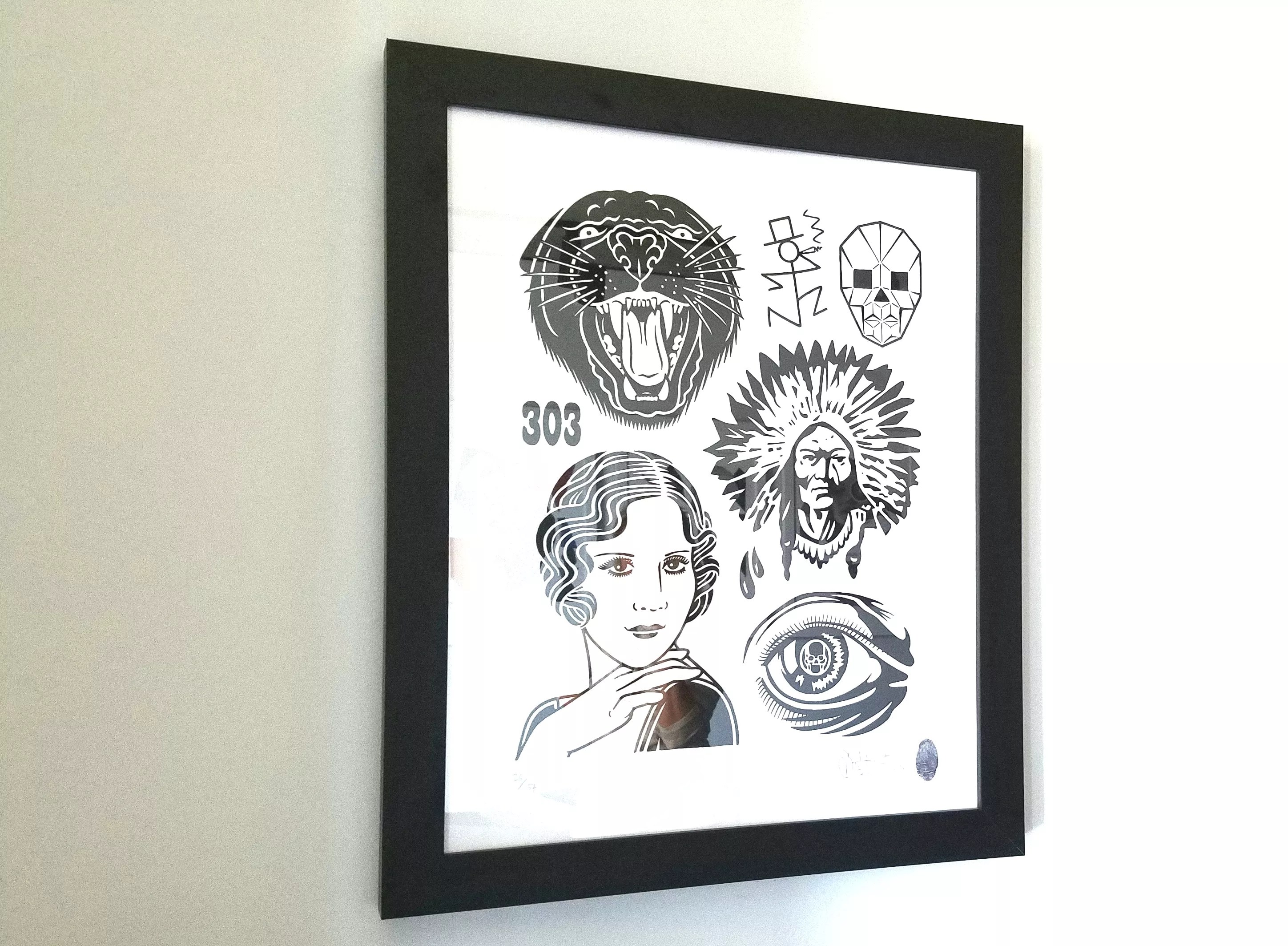 The adjacent bedroom might display a blown-up print of Travis Hetman’s “Sun Mountain,” which showcases a possible beach or wheat field, a boardwalk or wood cabin and, in true Colorado fashion, a moose. Mike Giant’s old-school, tattoo-like prints that show a panther, a war chief and a dame are also included in this collection. So is Kelsey McNatt’s “Ray Bans,” as well as images by printmaker Molly Bounds.