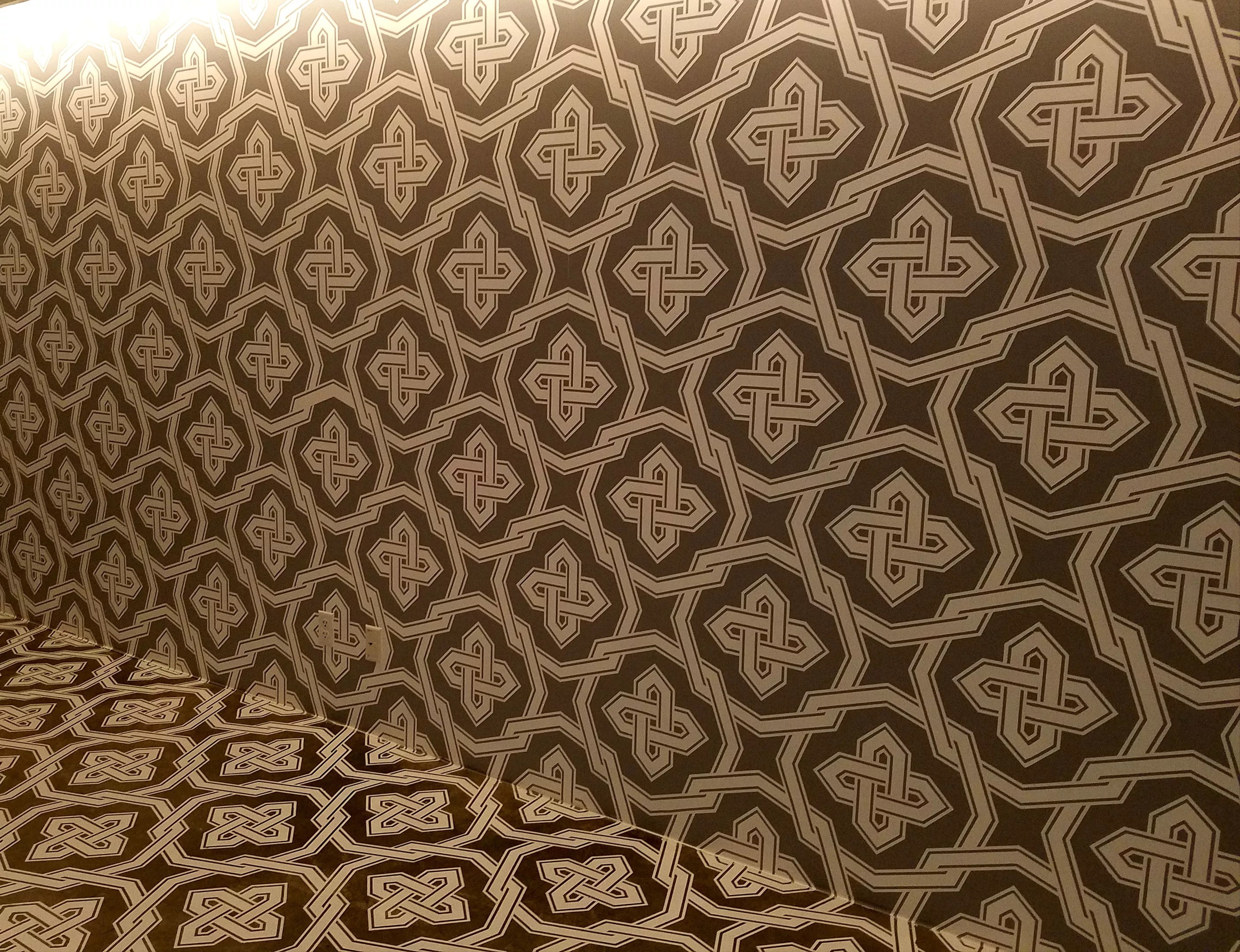 Robert Weidmann’s mural works as a wall covering and a nifty floor pattern.