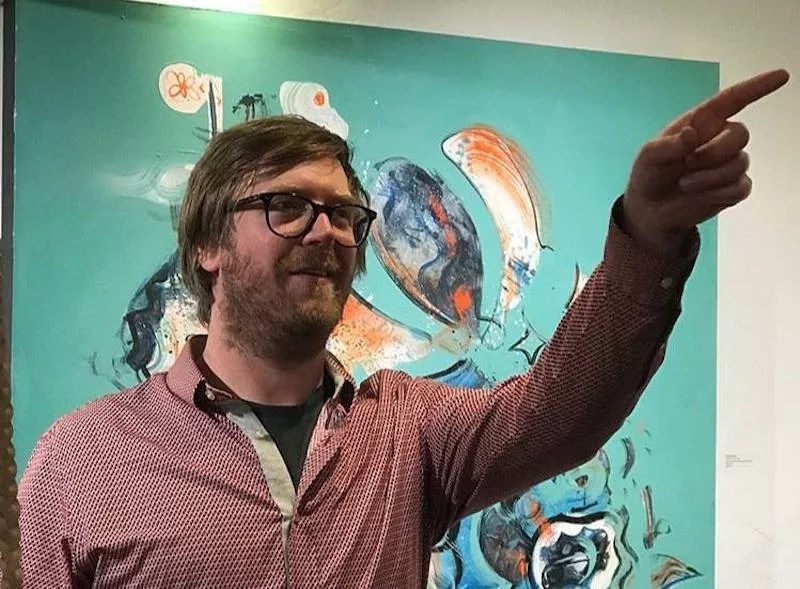 Max Kauffman in the gallery with his work.