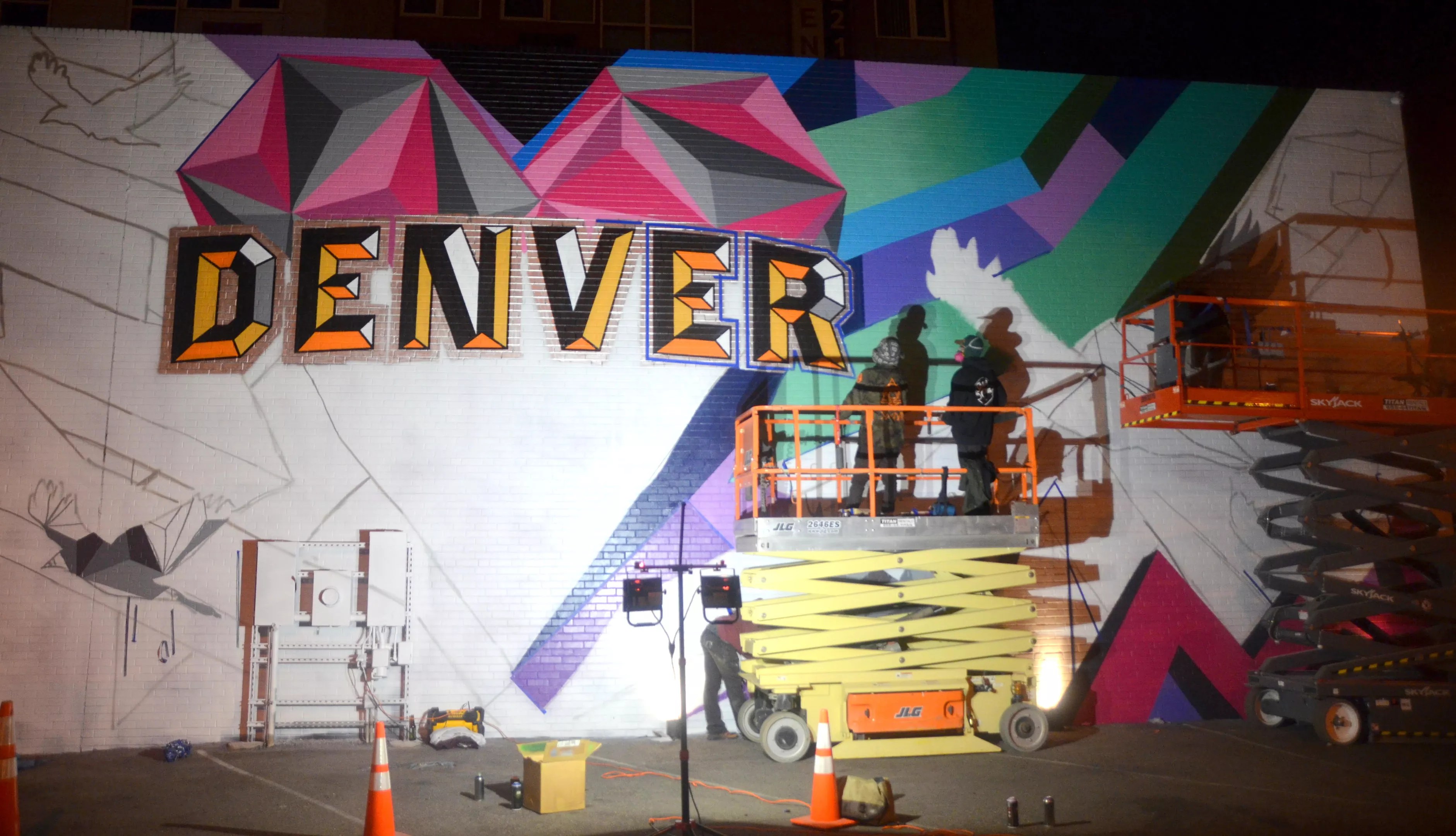 His vivid street-art collaborations adorn the walls of dozens of boutiques, breweries, bars and other businesses in Denver and across the country, and he’s helped curate and create major art-installation projects for brands including Visit Denver, the City of Denver, RiNo Art District, Ford Motor Company, X Games, Budweiser, Zumiez, Loveland Ski Area, Wahoo Fish Tacos, Academy 360 School, the University of Denver and Pabst Blue Ribbon. He’s shared snowboard-contest podiums with the likes of Shaun White and Travis Rice, and the Snowboard Camp Tour he founded to make freestyle riding more accessible for kids is now entering its second decade. He’s also the co-owner of So-Gnar, an umbrella collective responsible for the Snowboard Camp Tour, the So-Gnar streetwear and apparel line that he helps design, and the Shredded Beats hip-hop concert series he promotes. Another Pat Milbery collaboration, from RiNo Music Fest. Lindsey Bartlett
