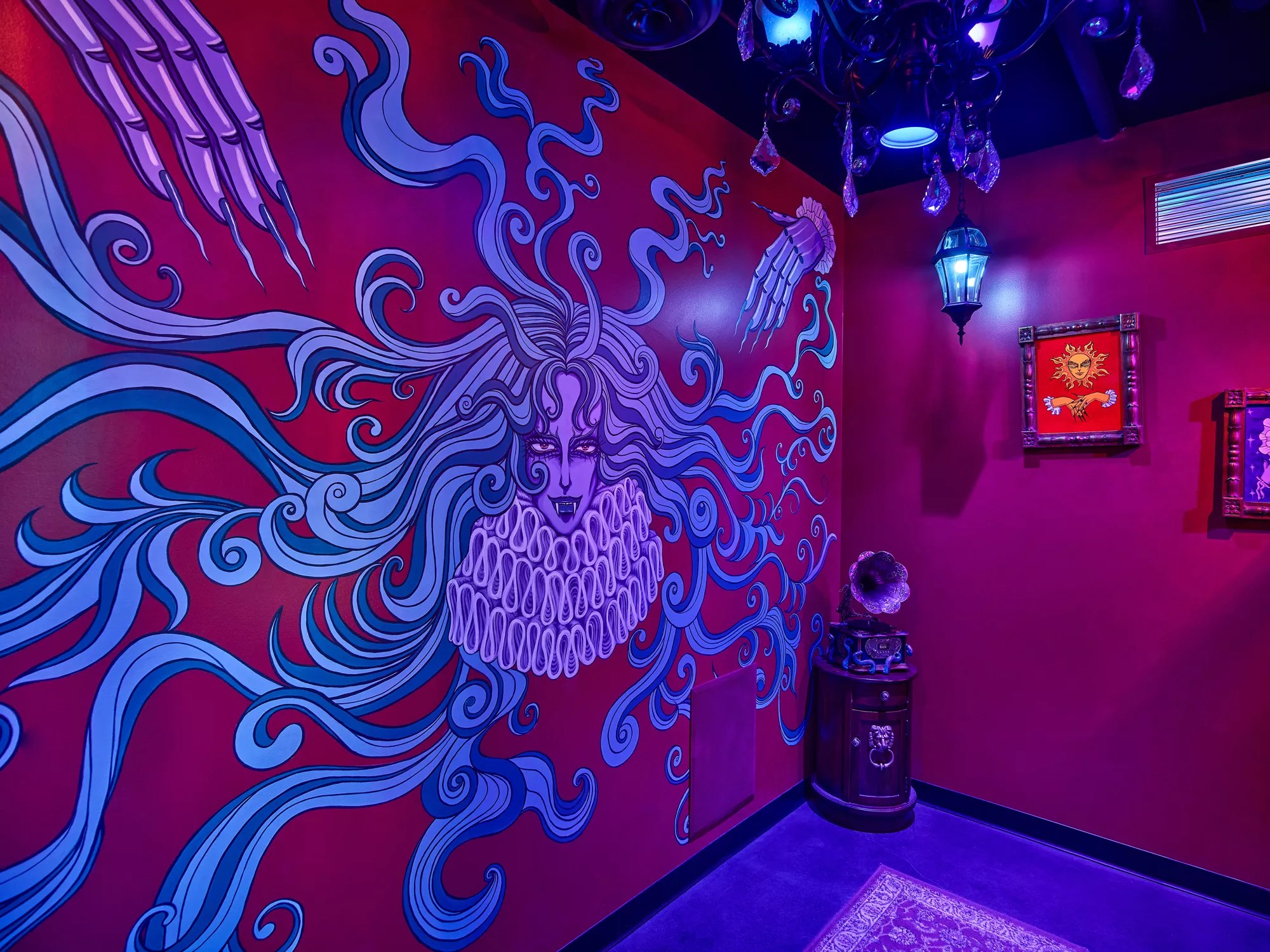 This secret room, made by local artist and DJ Cache Flow, is located in the world of Ossuary. Flowing black and white lines are projected throughout the room and interact with your movements, making this a prime spot to snap an interesting photo. Fair warning: Meow Wolf cautions that this may be a difficult space for those who are especially sensory-sensitive or epileptic. And it’s also going to be tough if you’ve indulged in too many adult beverages during the Adulti-Verse.